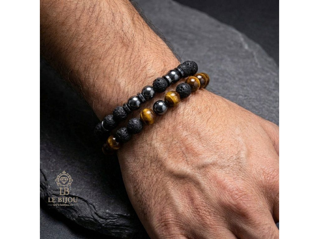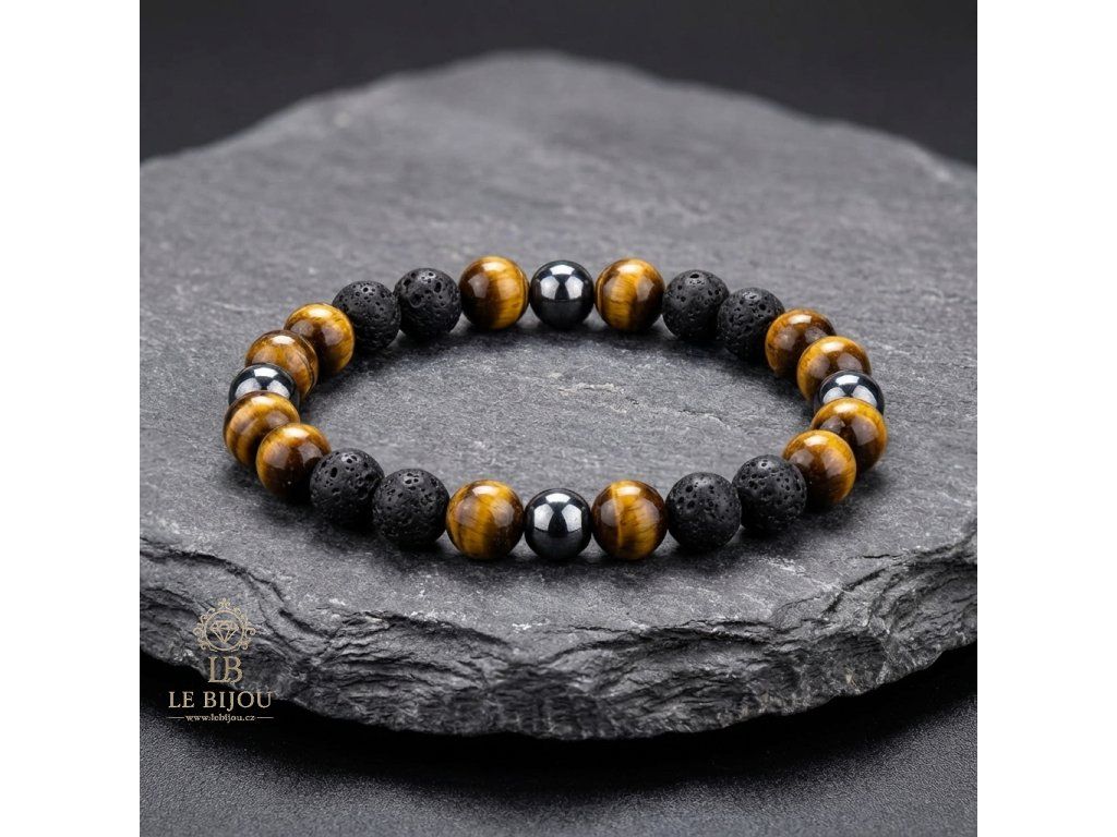 ABU - náramek s tygřím okem, lávou a hematitem - hnědá
