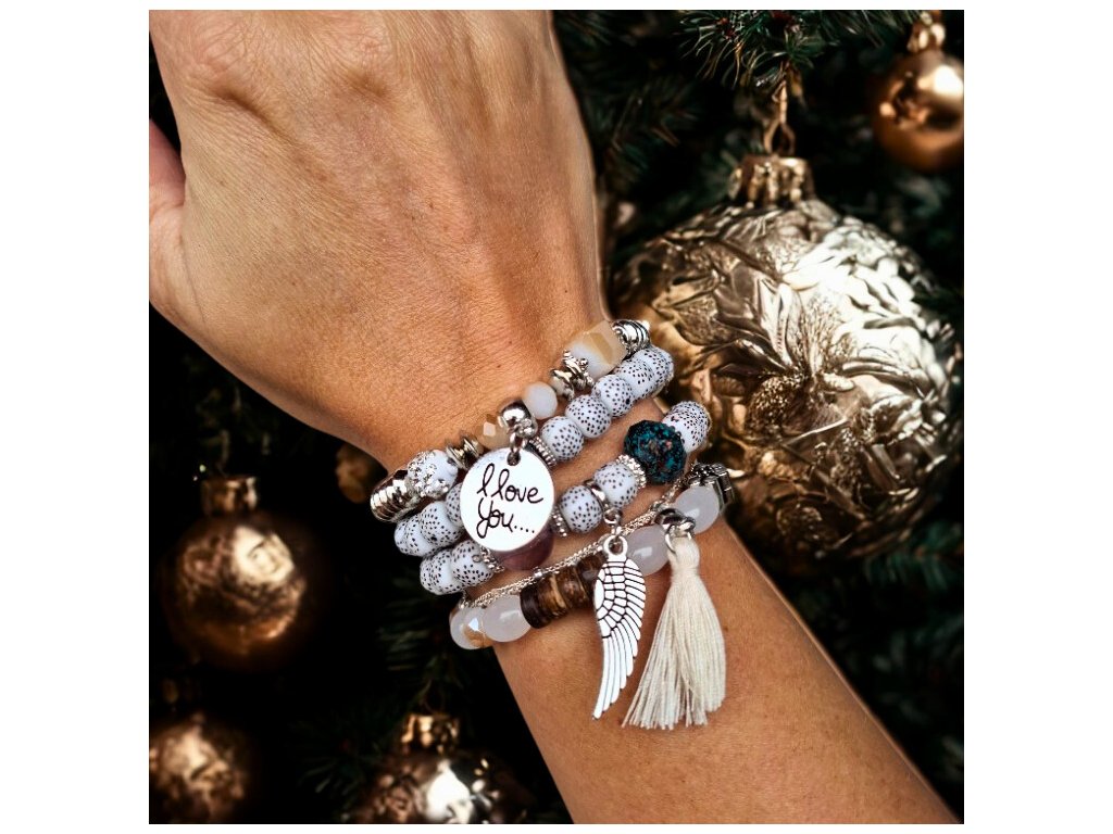 náramek s přívěskem „I love you“ – drobný, ale výmluvný symbol lásky.,
