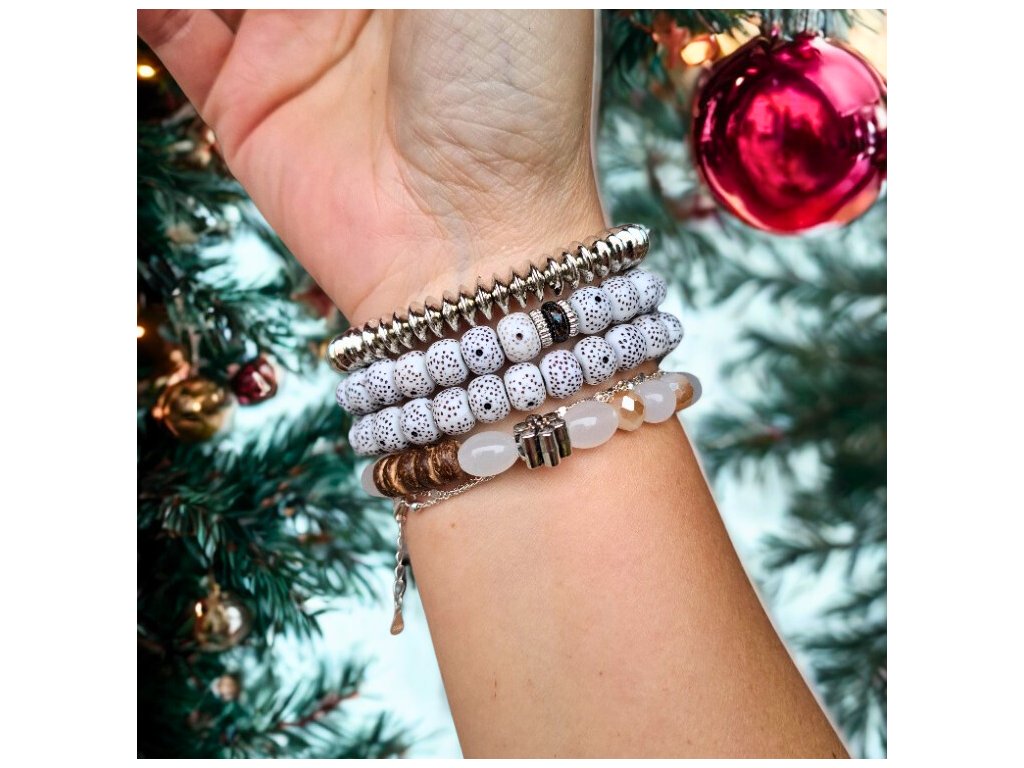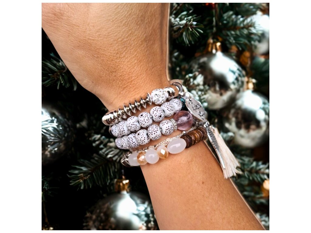 ✔️ Náramky jsou navlečeny na pružném vláknu, takže se pohodlně nasazují a drží svůj tvar.