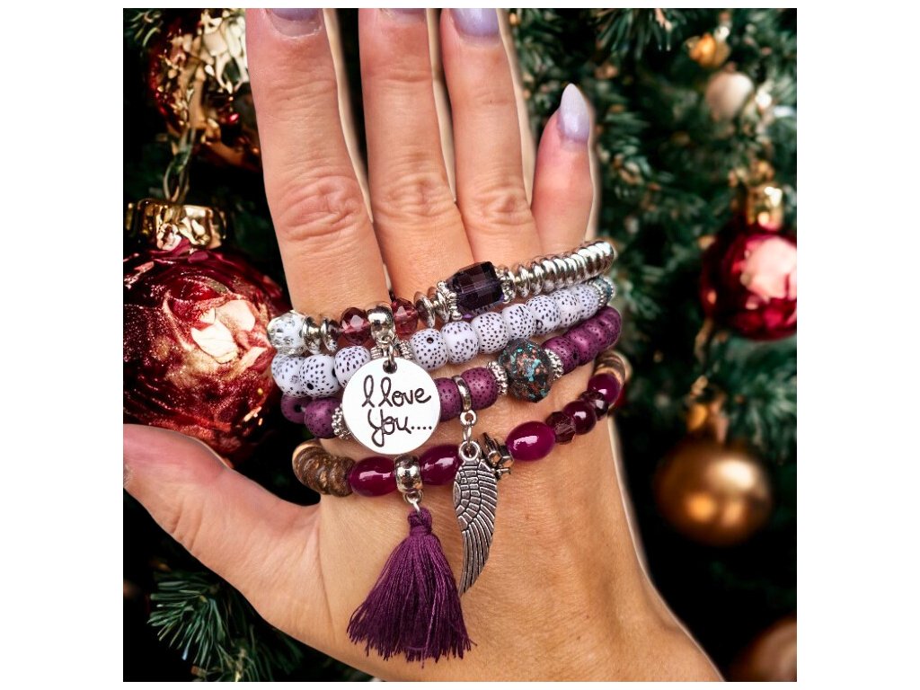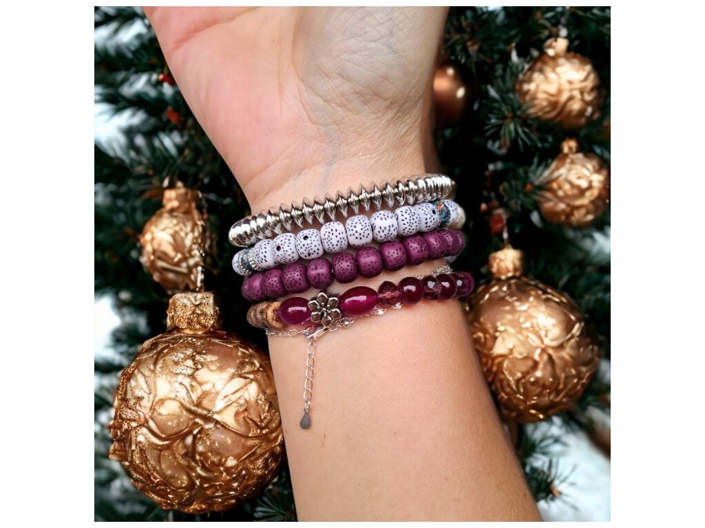 ✔️ Náramky jsou navlečeny na pružném vláknu, takže se pohodlně nasazují a drží svůj tvar.