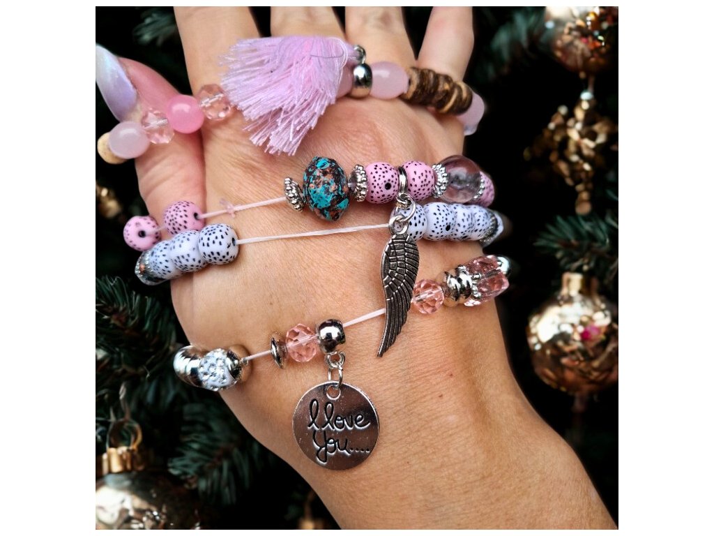 ✔️ Náramky jsou navlečeny na pružném vláknu, takže se pohodlně nasazují a drží svůj tvar.