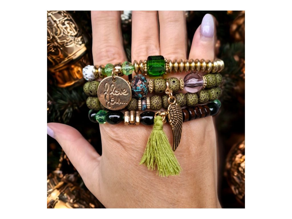 Objev kouzlo boho stylu s originální sadou čtyř náramků, které můžeš nosit samostatně nebo je libovolně kombinovat: