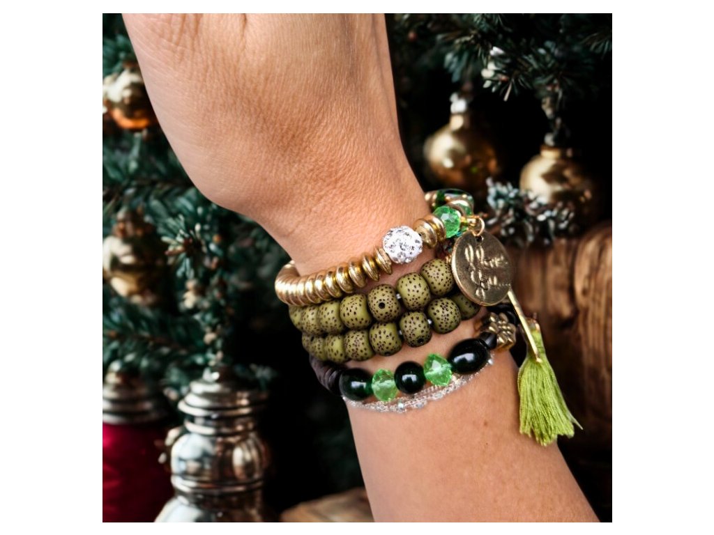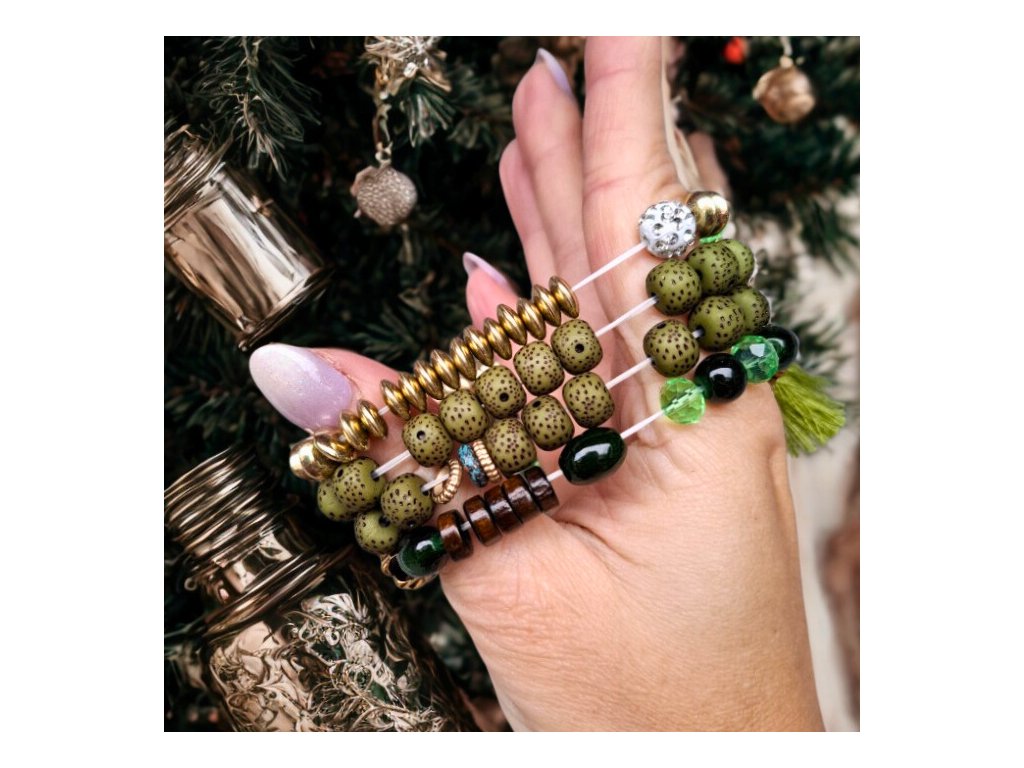 ✔️ Náramky jsou navlečeny na pružném vláknu, takže se pohodlně nasazují a drží svůj tvar.