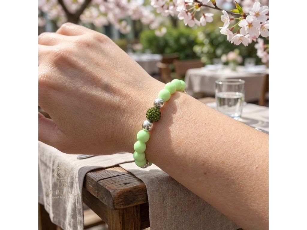 Elegantní náramek ve stříbrno-zelené kombinaci, který zaujme jemným třpytem a nadčasovým vzhledem ✨.