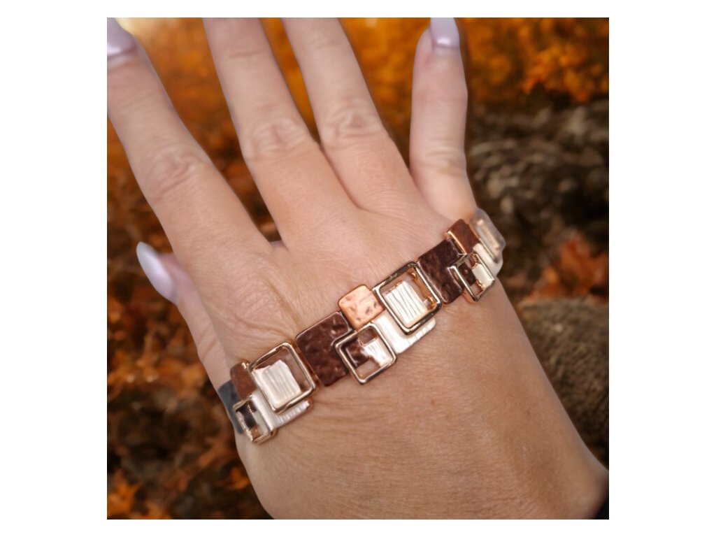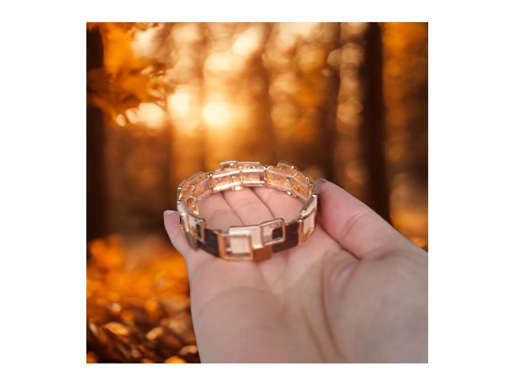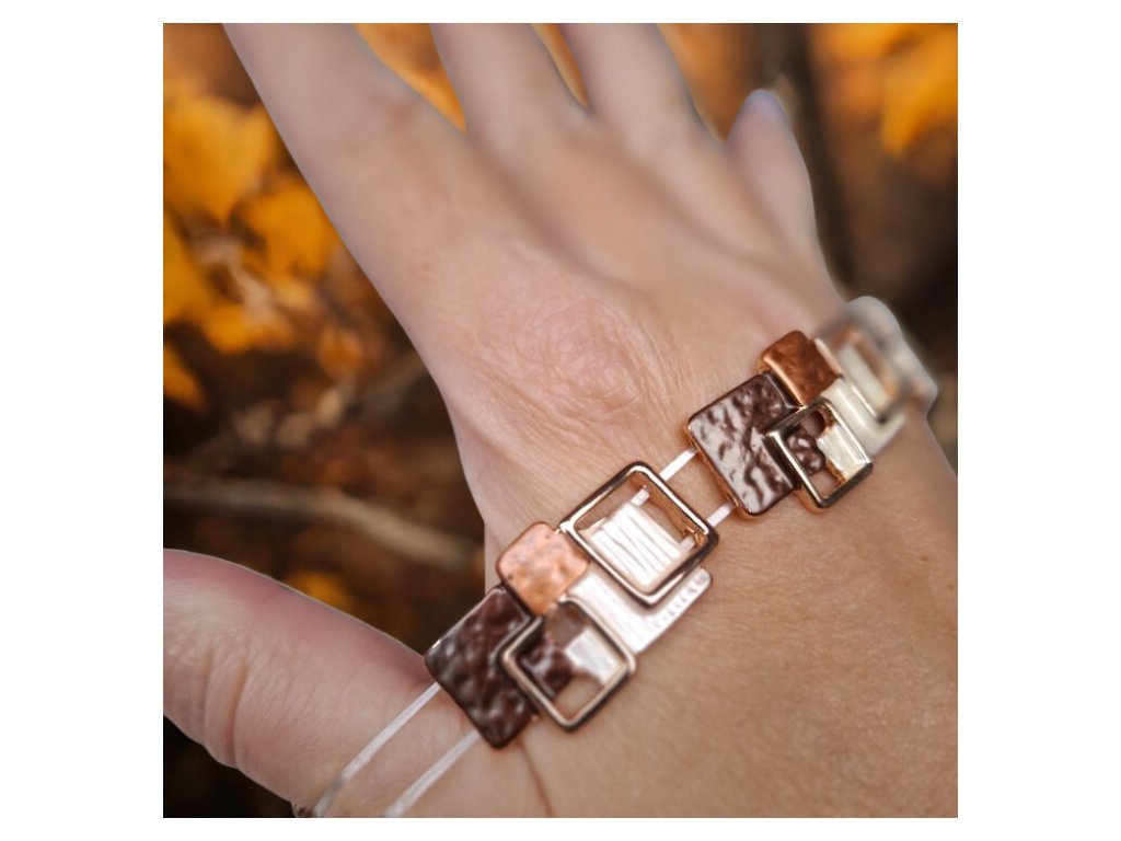 ✨ Čtvercový náramek zlaté barvy - hnědý