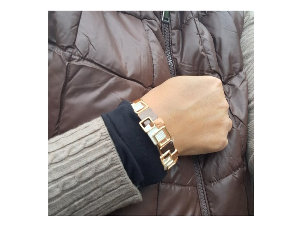 Čtvercový náramek zlaté barvy - hnědý