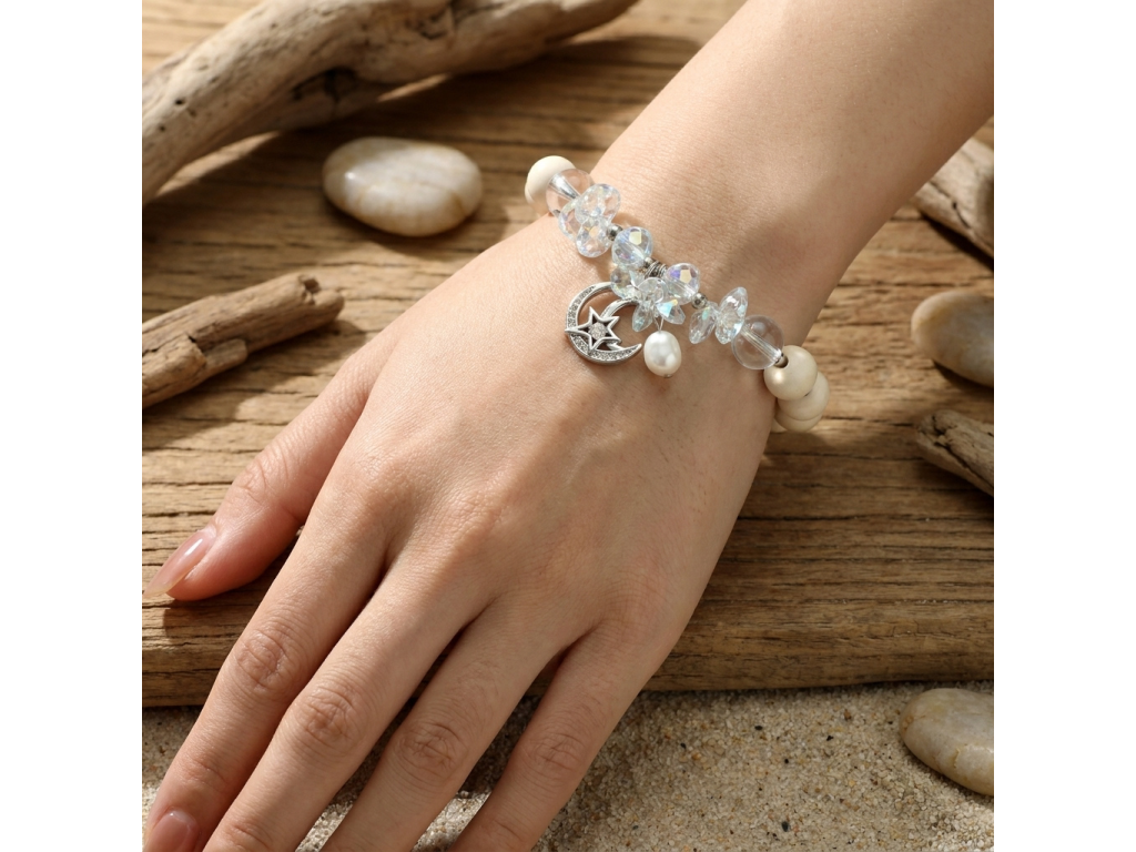 Dámský náramek s ametystem, perlami a křišťálem Lovely Stones