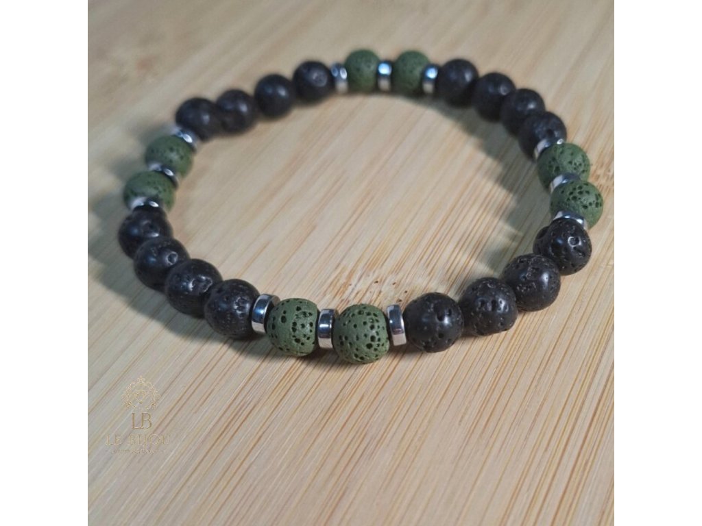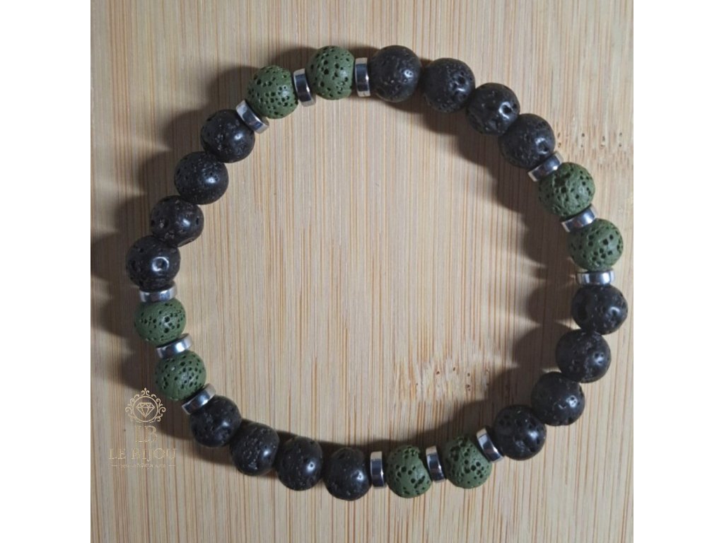📿 Materiál: lávový kámen + hematit