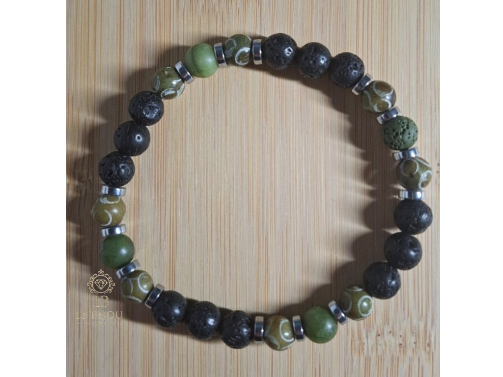 DINNY - náramek z lávy černé, jadeitu (zelený a Taiwan) + hematitu
