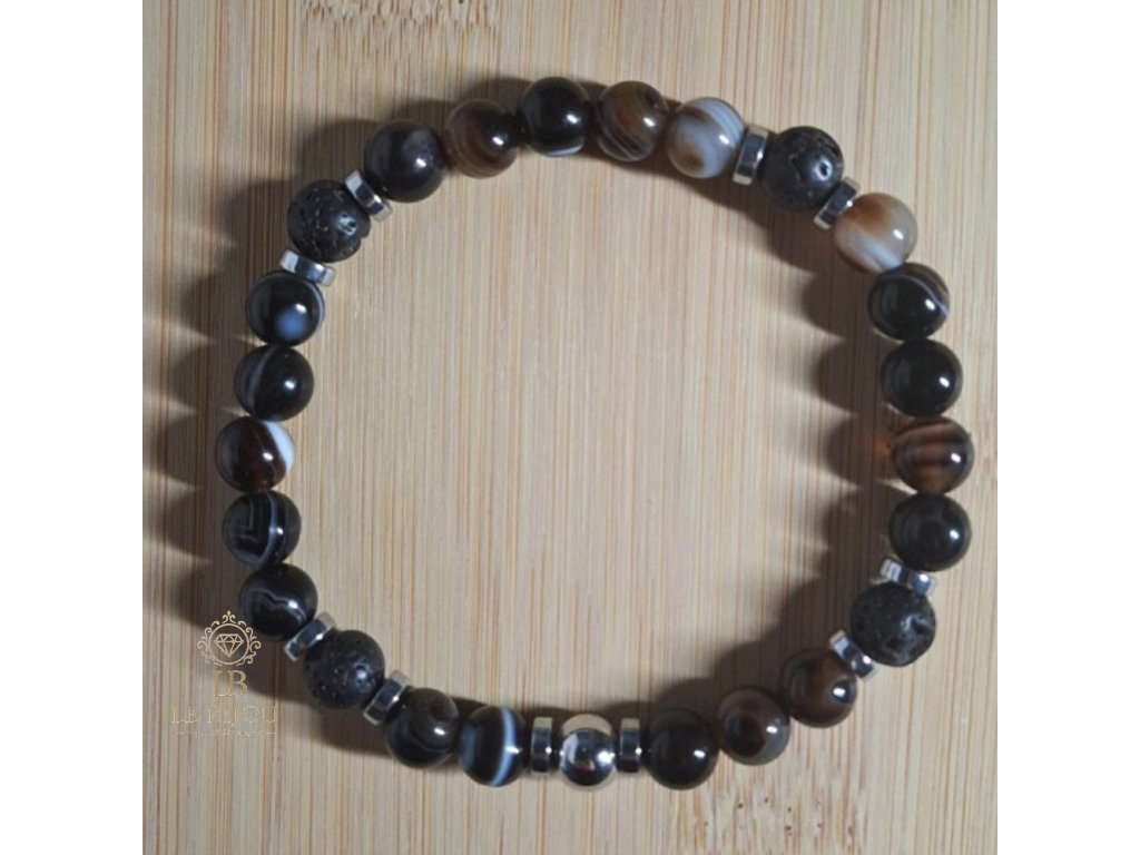 📿 Materiál: lávový kámen, hnědočerný achát, hematit