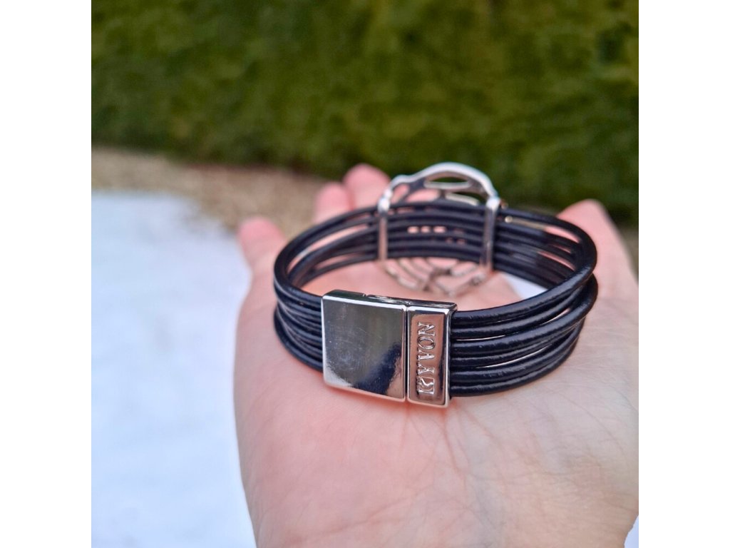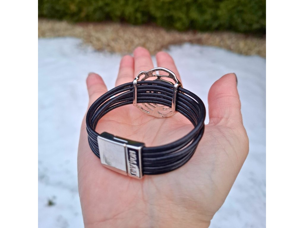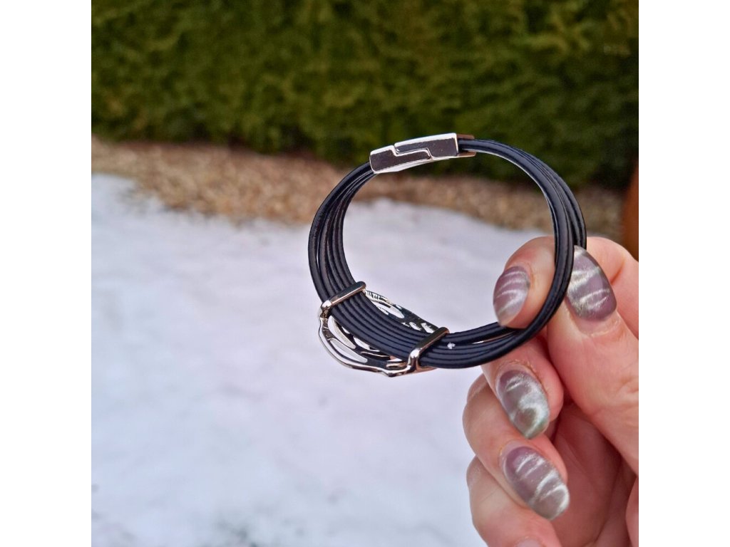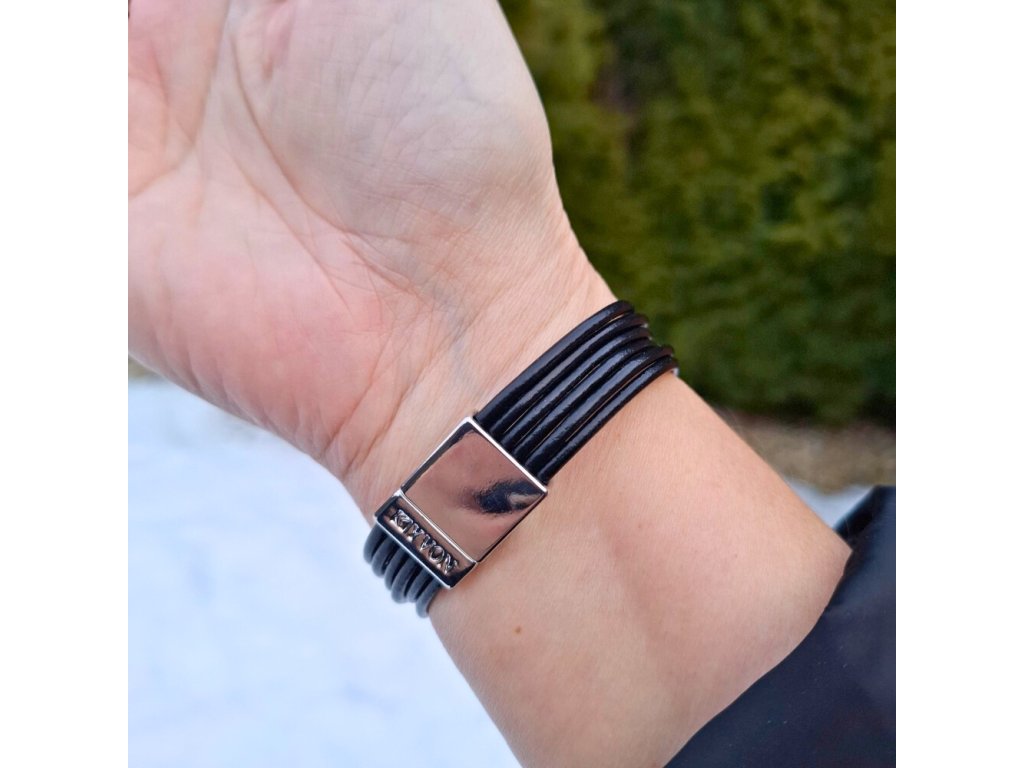 🖤 šest úzkých, kulatých pásků z PU kůže, které náramku dodávají lehkost a dynamiku