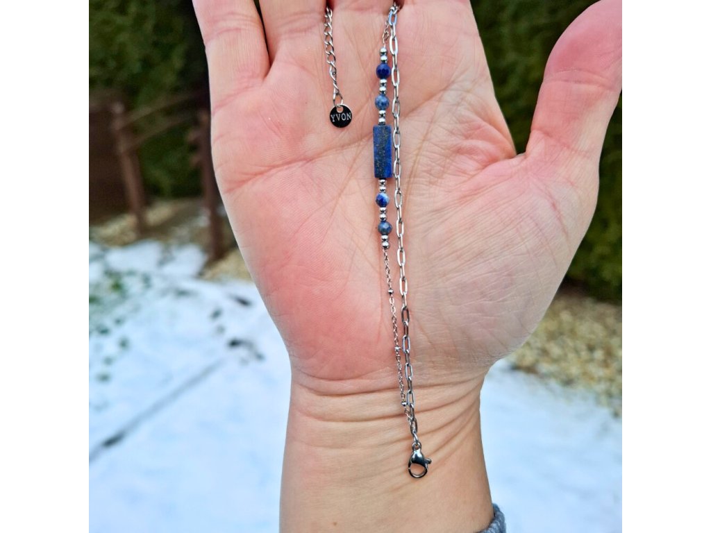 Vyroben z hypoalergenní nerezové oceli 316L a přírodních kamenů lapis lazuli, je vhodný i pro velmi citlivou pokožku.