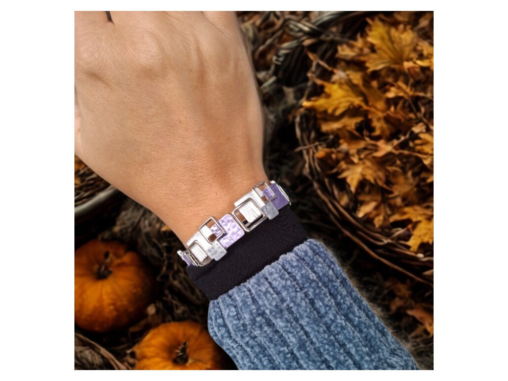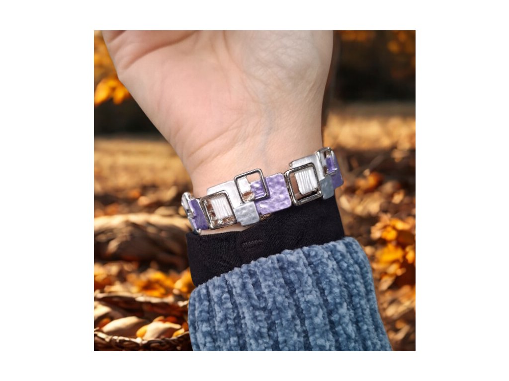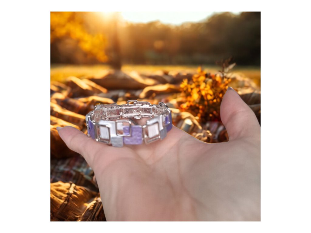 ✨ Čtvercový náramek stříbrné barvy - fialový