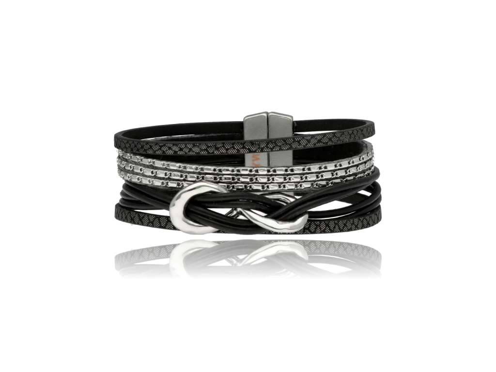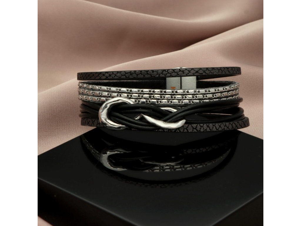 Kombinace kůže a kovových prvků vytváří nadčasový doplněk vhodný pro každodenní nošení i slavnostní příležitosti.