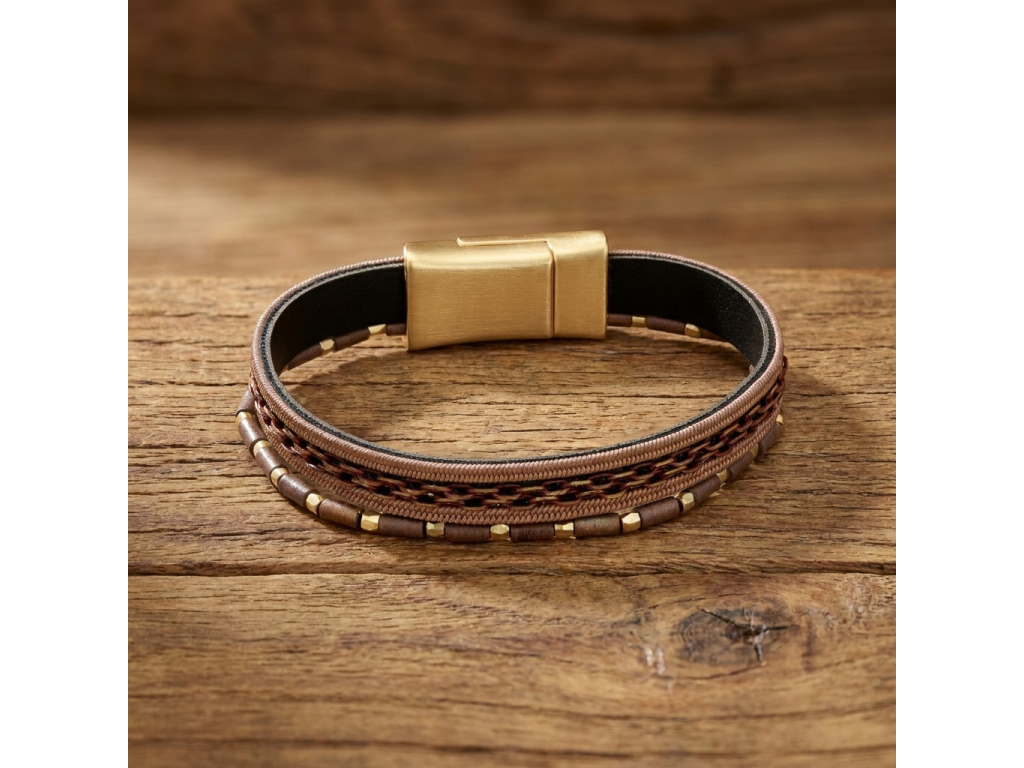 Kožený náramek s magnetickým zapínáním – pravá kůže, sklo