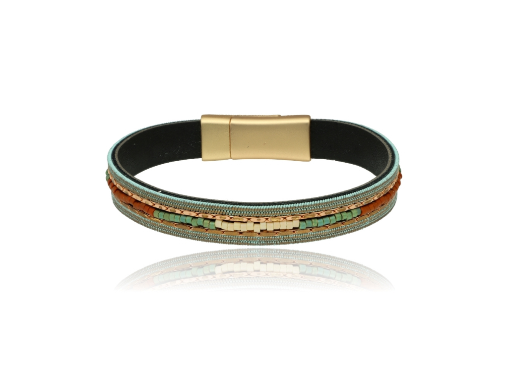 Kožený náramek s magnetickým zapínáním – pravá kůže, sklo