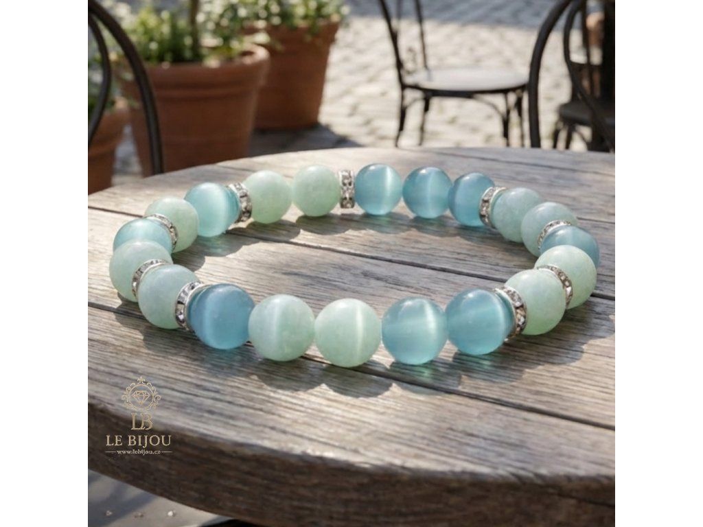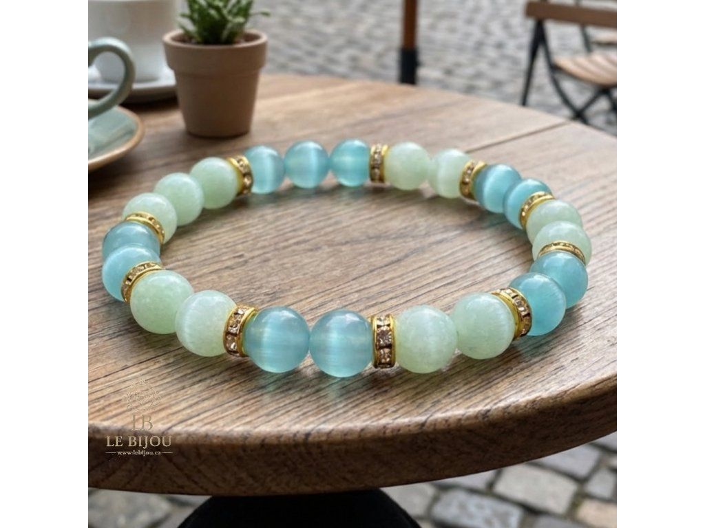 Objev jemnou harmonii a eleganci v podobě náramku LUNA, který spojuje tajemnou energii kočičích očí s uklidňující silou světle zeleného jadeitu. 💚