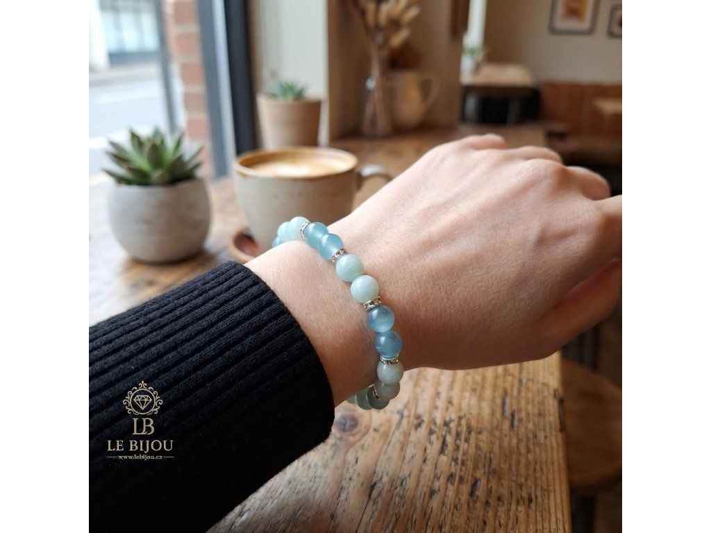 LUNA – Náramek z kočičích očí a jadeitu (blankytně modré)