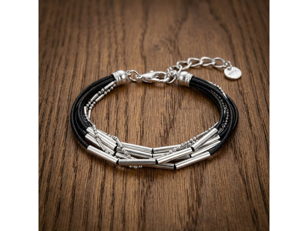 Minimalistický náramek je ideální volbou pro ženy, které hledají jednoduchý, pohodlný a stylový doplněk pro každodenní nošení. Kombinace voskované šňůrky a kovových detailů působí moderně a nenuceně.