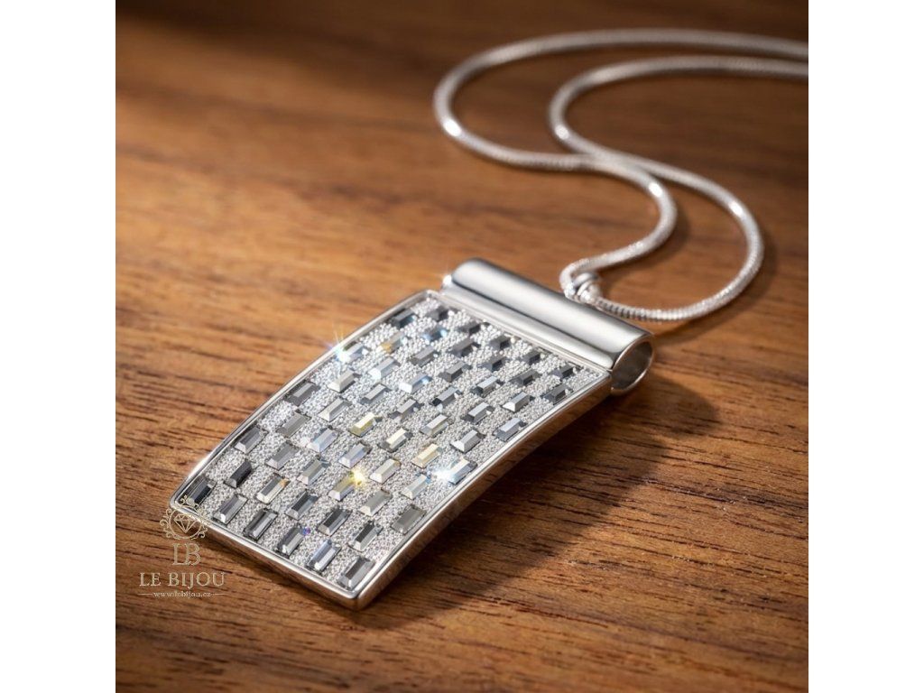 Dlouhý náhrdelník s elegantním obdélníkovým přívěskem, který krásně prodlouží siluetu a dodá outfitu moderní, sofistikovaný nádech. Minimalistický design z něj dělá univerzální doplněk – perfektní jak k jednoduchému tričku, tak k elegantním šatům.