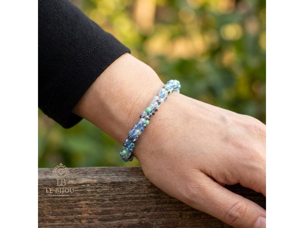 Skleněné krystaly inspirované drahokamy zaujmou svou precizností a brilantním leskem, díky čemuž působí náramek jemně, ale zároveň luxusně. Perfektně se hodí pro každodenní nošení i letní společenské příležitosti.