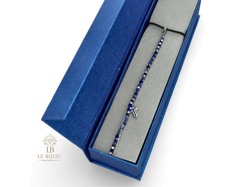 Objevte šperk, který zaujme svou hloubkou a elegancí. Přírodní lapis lazuli s typickou sytě modrou barvou dodává náramku výrazný, ale stále sofistikovaný vzhled, který skvěle doplní každý outfit.