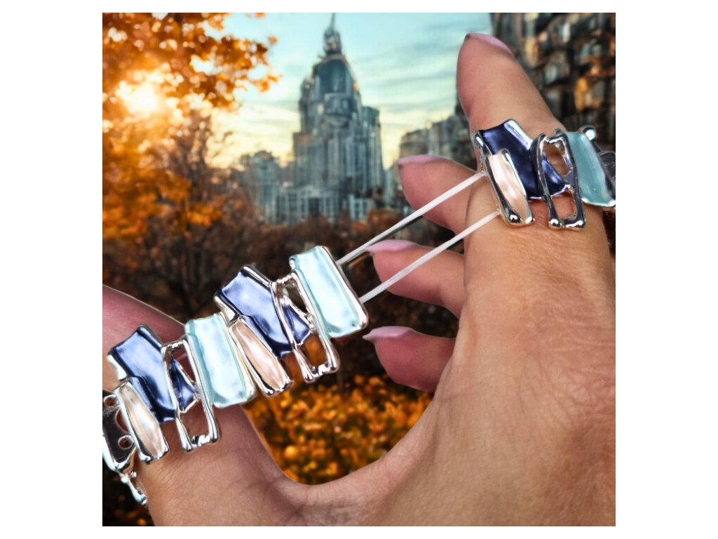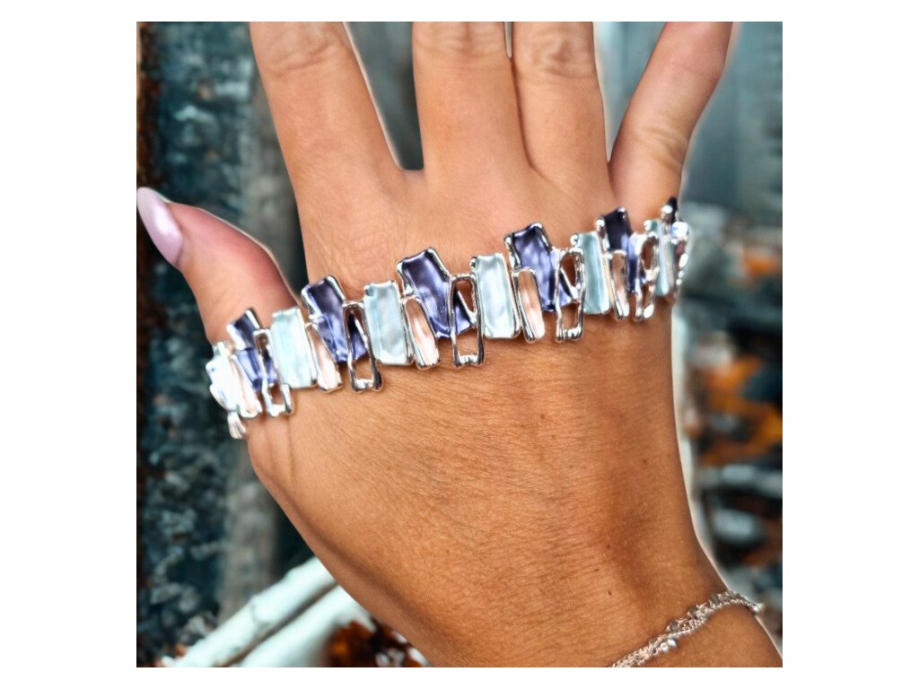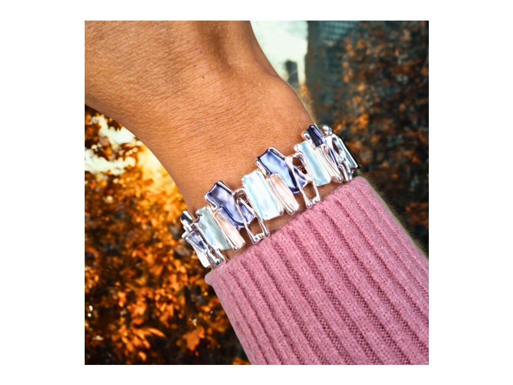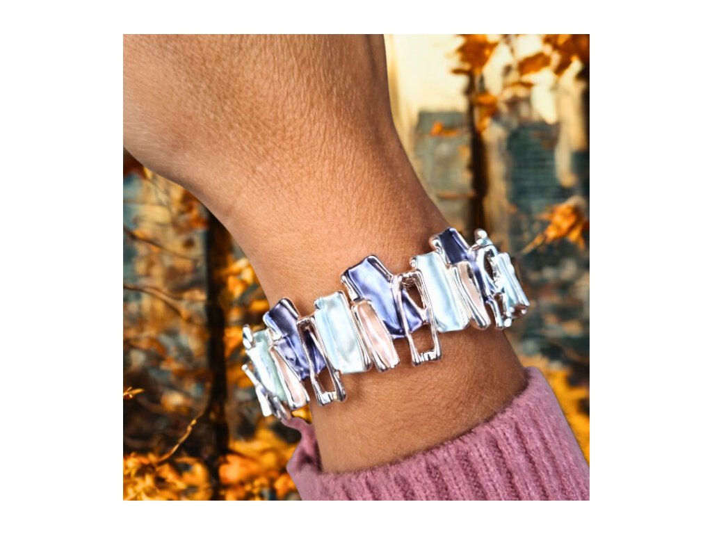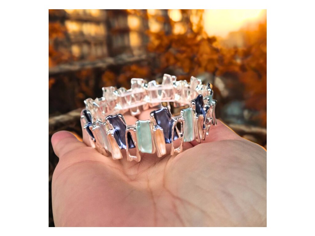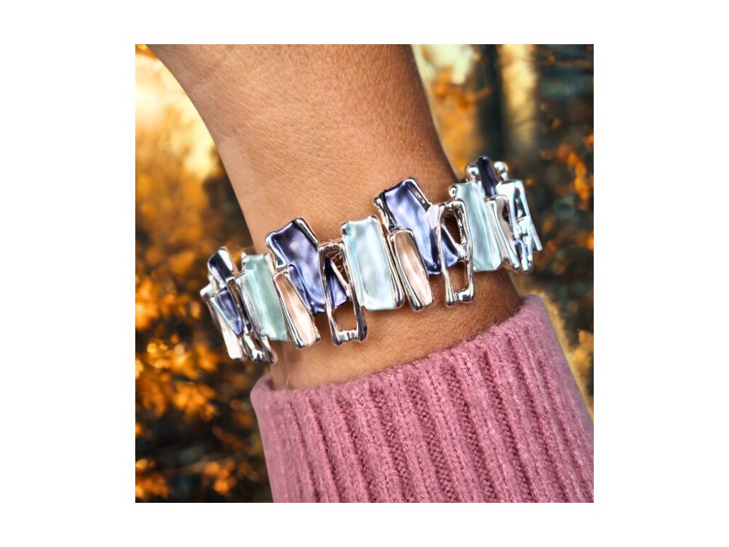 ✨ Náramek s nepravidelnými barevnými kapkami stříbrné barvy - modrý
