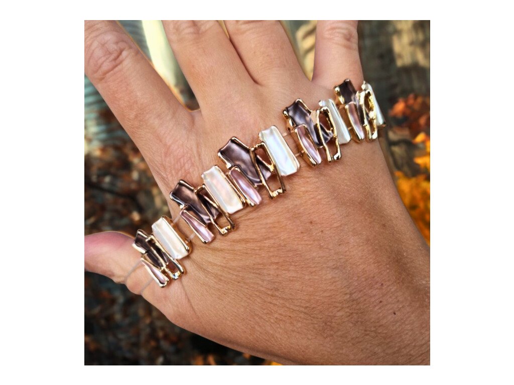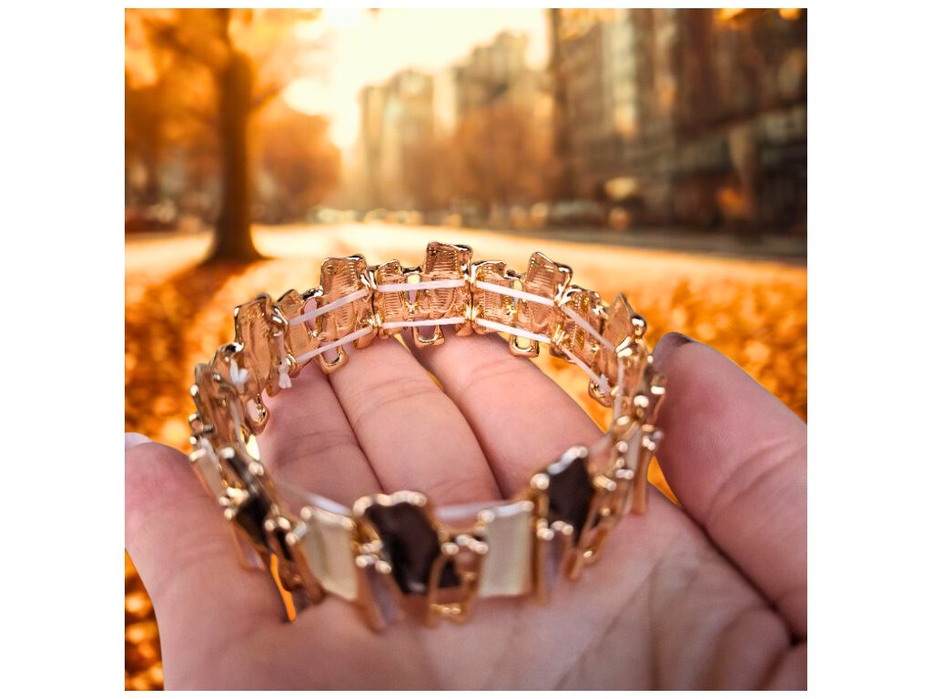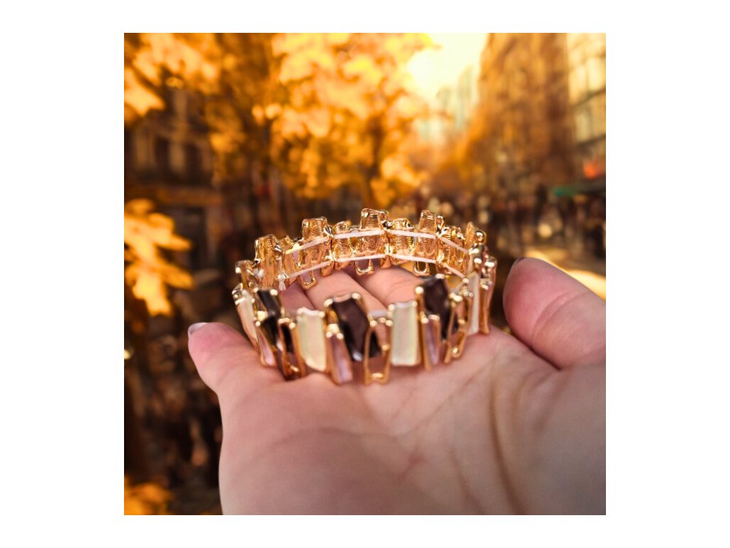 ✨ Náramek s nepravidelnými barevnými kapkami zlaté barvy - hnědý