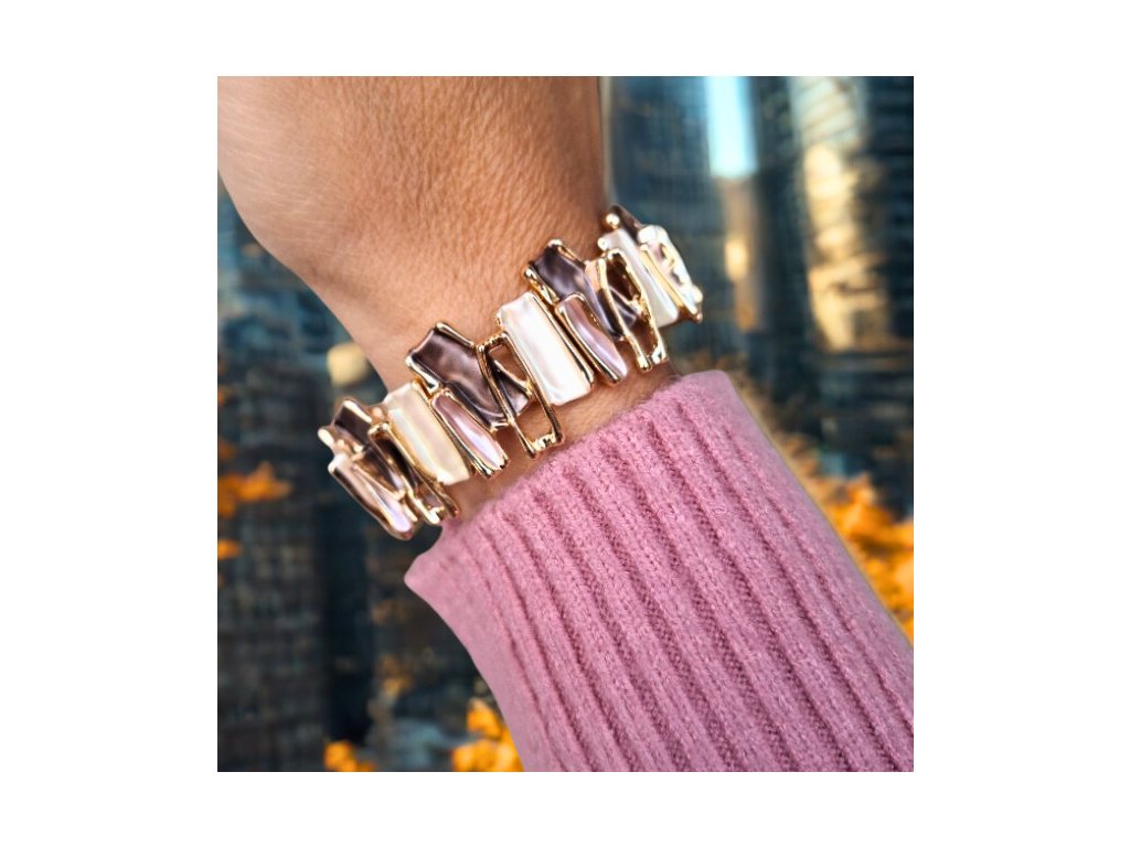 Tento elegantní náramek z kvalitní zinkové slitiny se zlatým pokovením přináší šmrnc a originalitu každému outfitu.