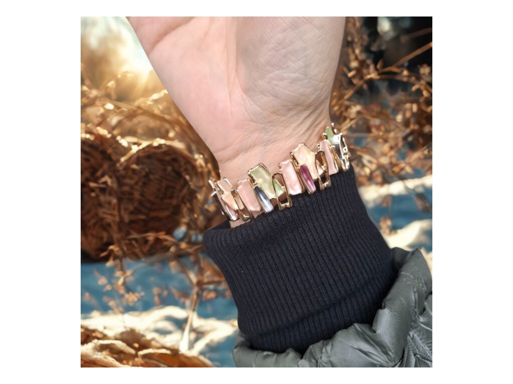 ✨ Náramek s nepravidelnými barevnými kapkami zlaté barvy - světlý