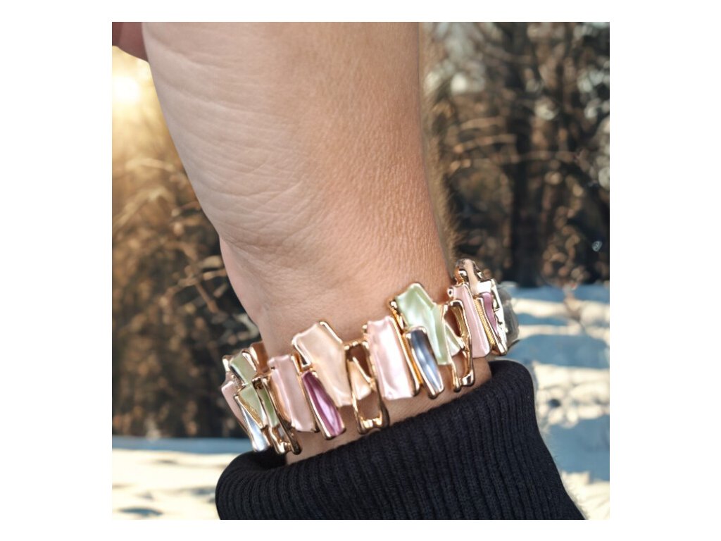 Náramek s nepravidelnými barevnými kapkami zlaté barvy - světlý