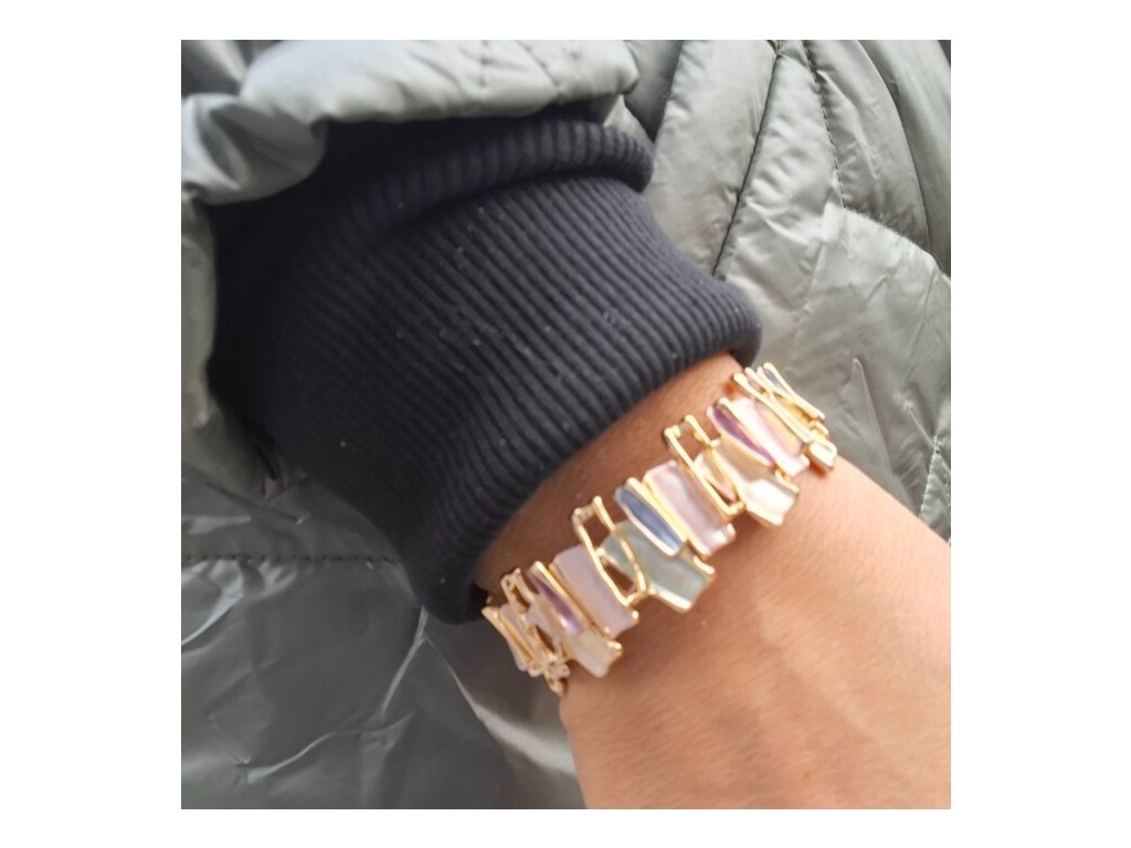 Tento elegantní náramek z kvalitní zinkové slitiny se zlatým pokovením přináší šmrnc a originalitu každému outfitu.