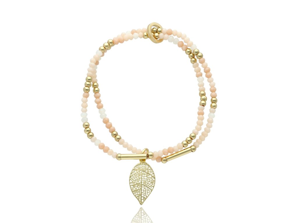 Náramek s podzimním listím - zlaté komponenty - světlý