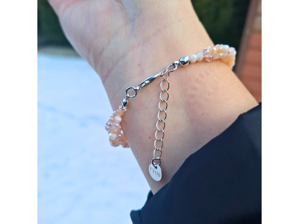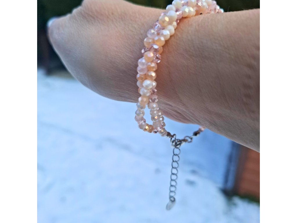 Náramek ze tří řad drobných, fazetovaných krystalů - stříbrné komponenty - starorůžová