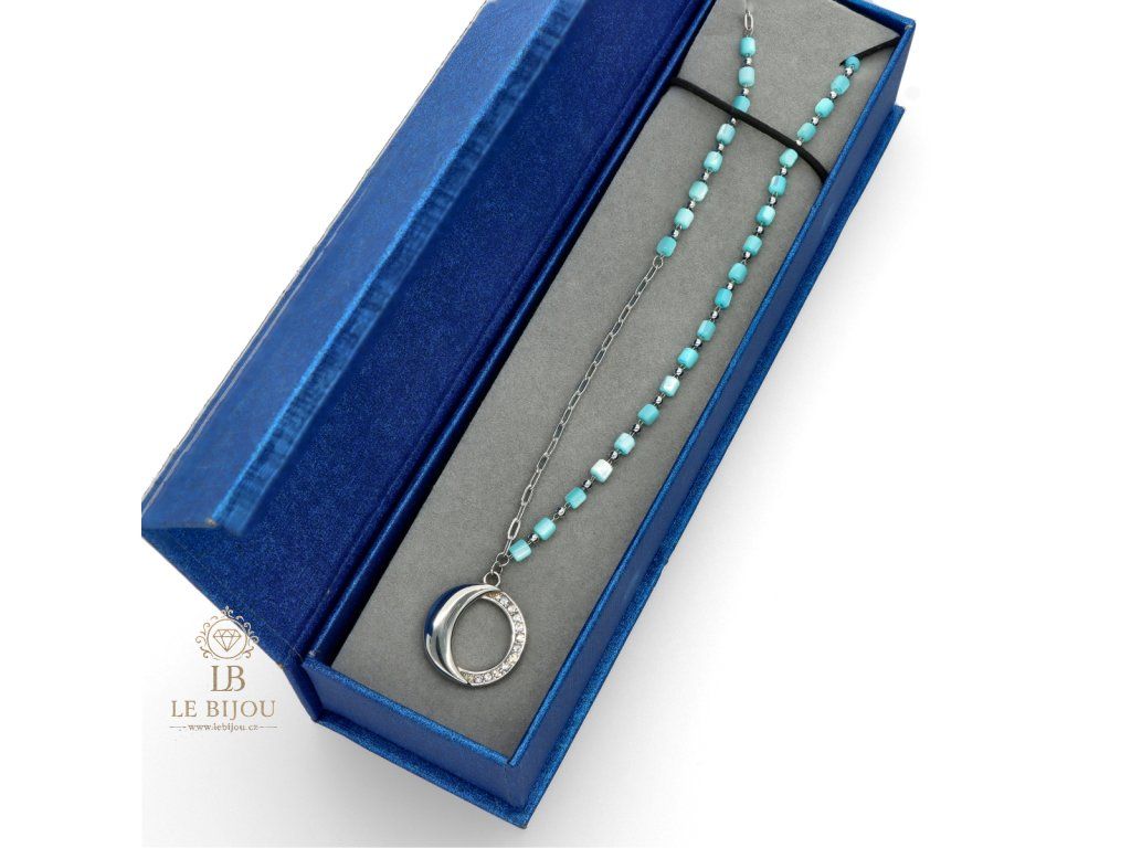 Dopřejte si šperk, který v sobě nese lehkost a přirozenou krásu. Tento dlouhý náhrdelník zdobí přírodní modrá mušle, jejíž jemné odlesky připomínají klid mořské hladiny a dodávají celému designu svěží a elegantní nádech.