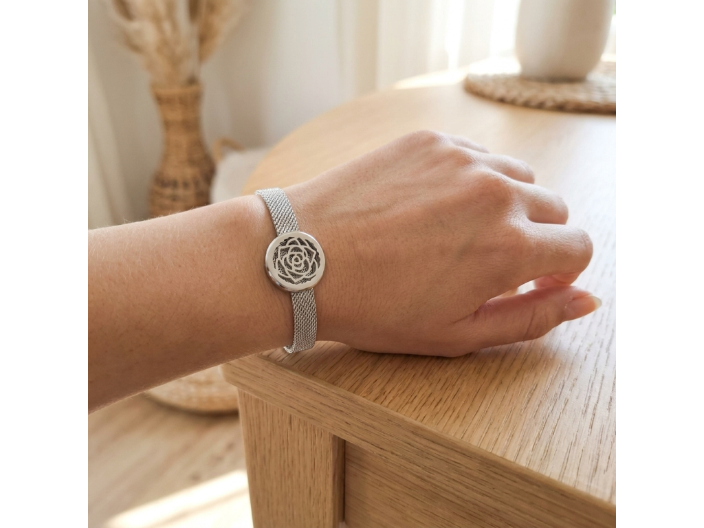 Výrazný dámský náramek, který zaujme hustým pleteným provedením a dominantním středovým prvkem ✨