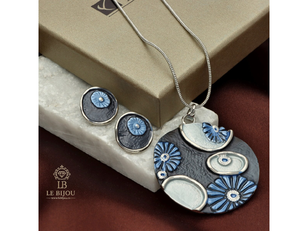 Sada je vyrobena z kvalitního hypoalergenního kovu bez obsahu niklu a olova, díky čemuž je vhodná i pro citlivou pokožku. Jemné smaltované prvky dodávají šperkům originální vzhled a vytvářejí harmonickou kompozici, která zaujme na první pohled.