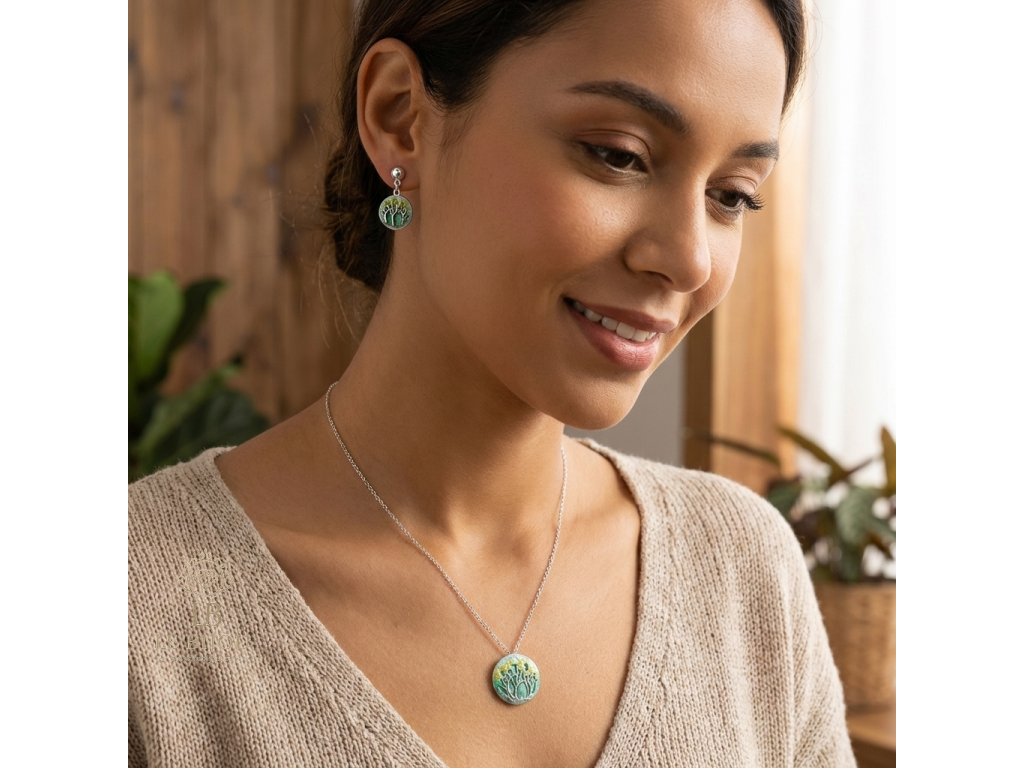 Šperky jsou ručně smaltované, díky čemuž má každý kus originální vzhled a osobitý charakter. Vyrobeny jsou z hypoalergenního kovu, který je šetrný k pokožce a zajišťuje pohodlné nošení i během celého dne.