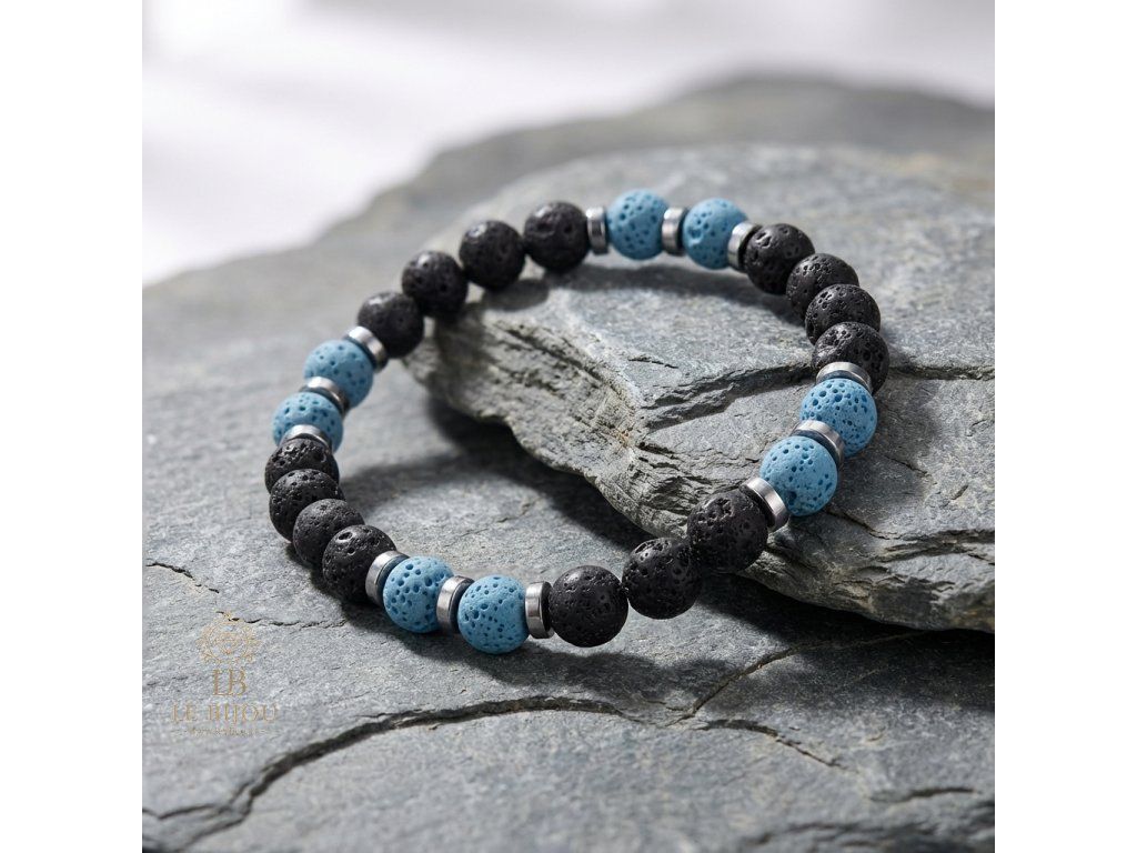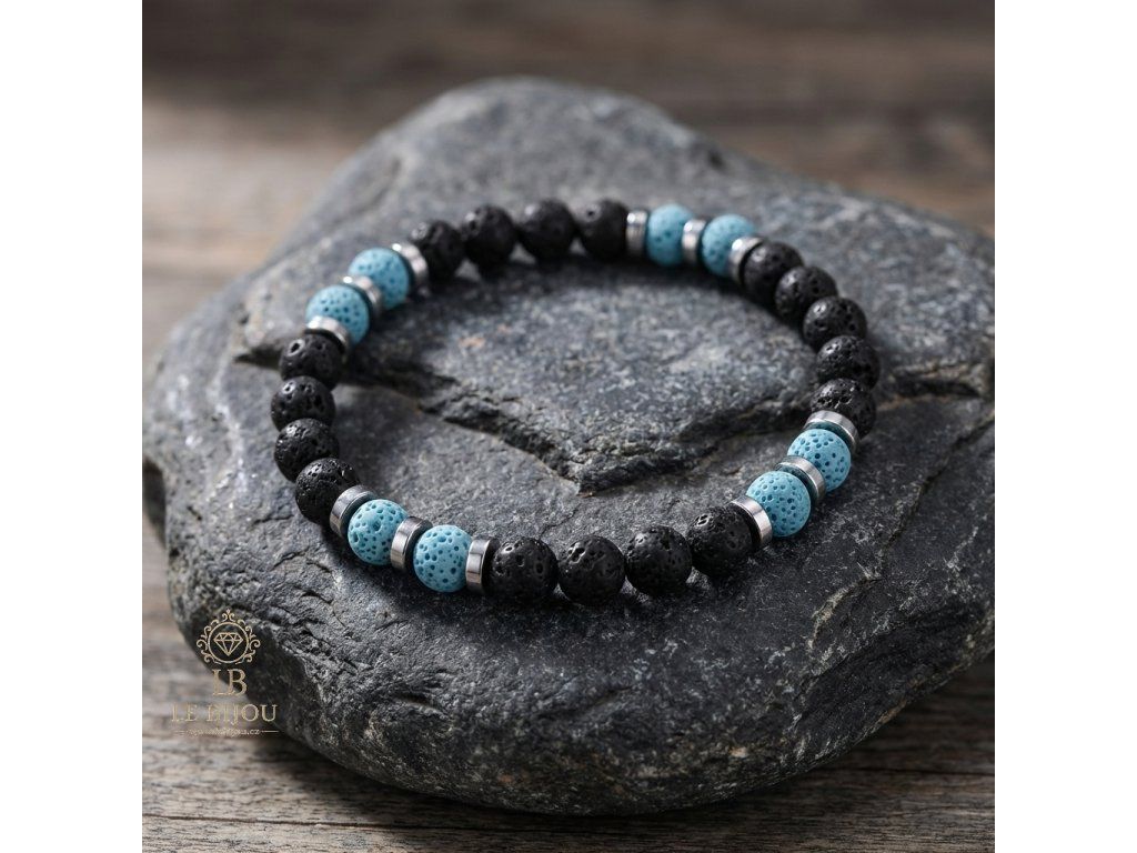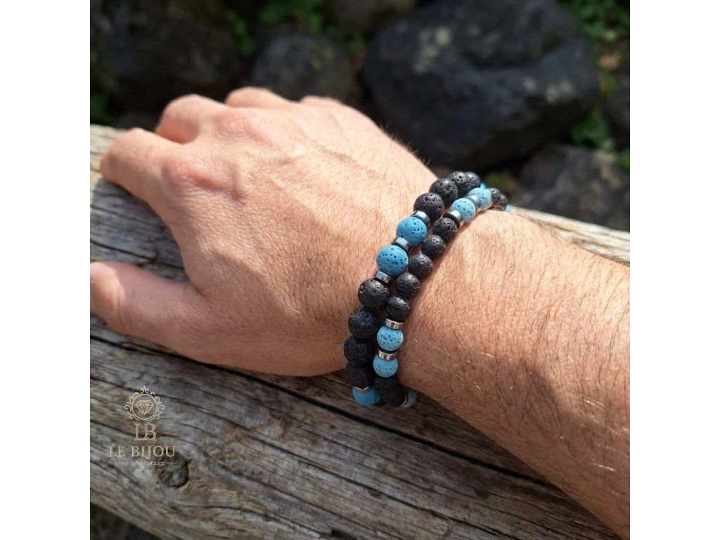 SÍLA & ROVNOVÁHA - Pánské náramky Láva & Hematit (set 2 ks) - světle modrá