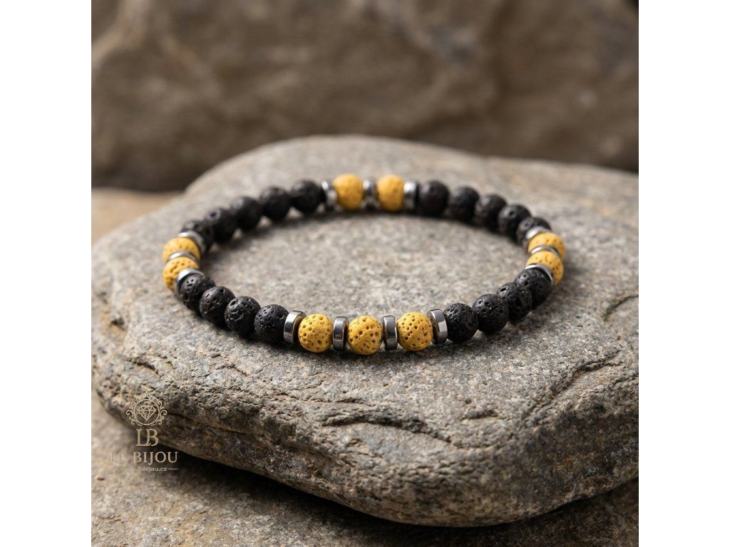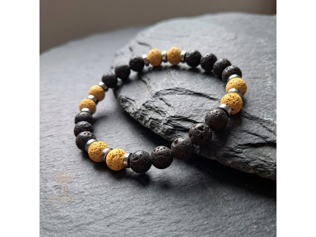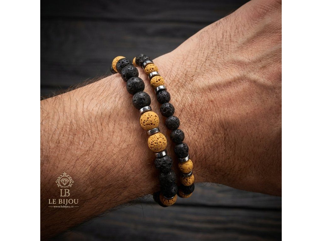 SÍLA & ROVNOVÁHA - Pánské náramky Láva & Hematit (set 2 ks) - žlutá