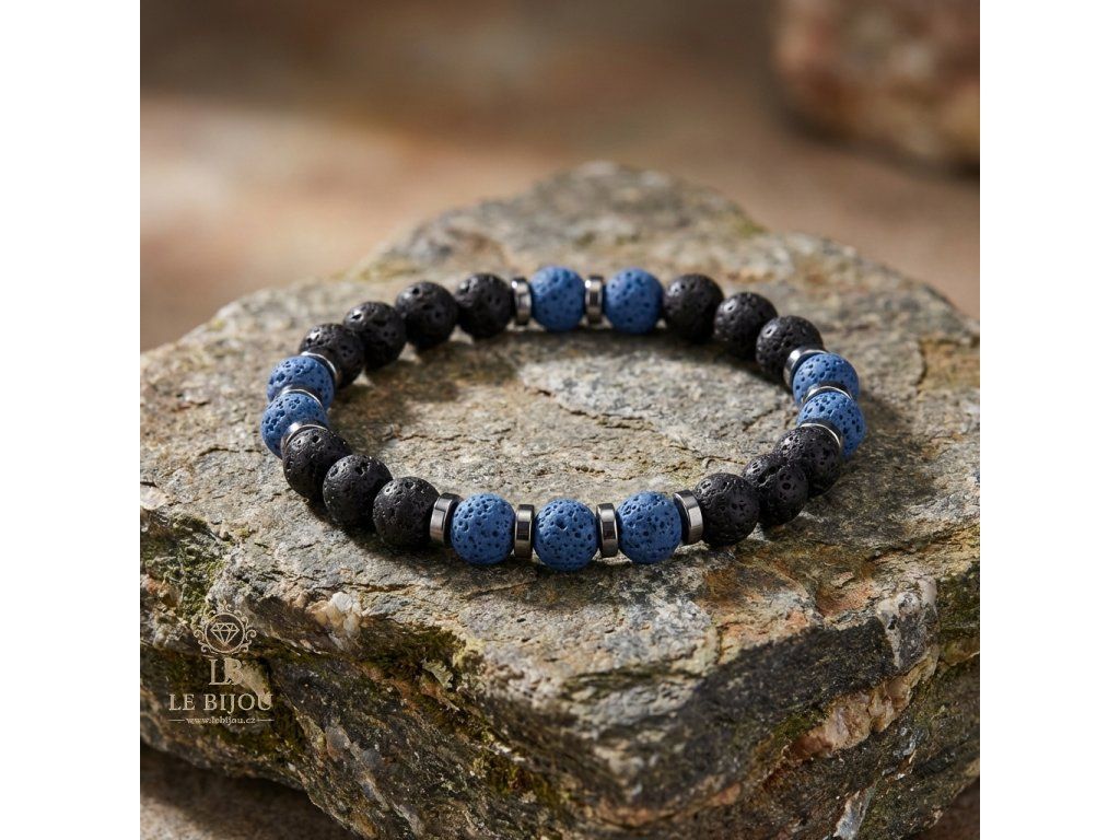SÍLA & ROVNOVÁHA - Pánský náramek Láva & Hematit - modrá