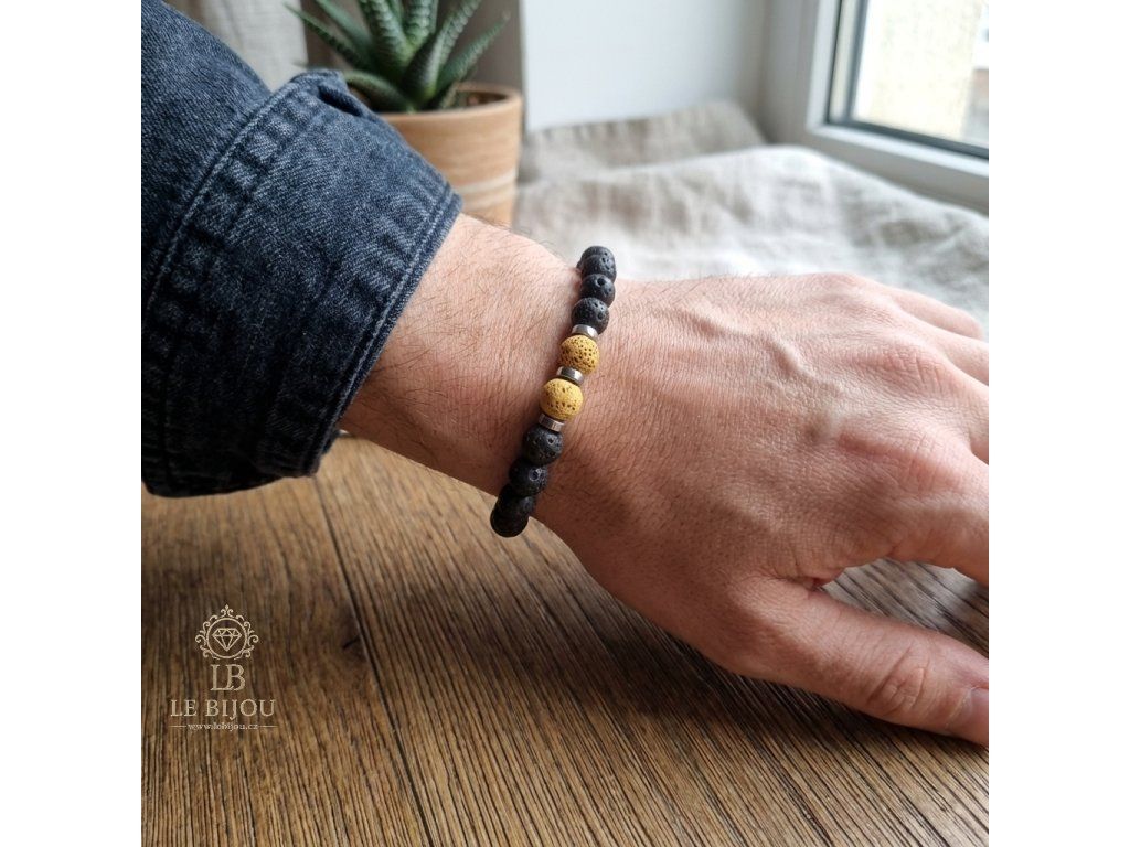 SÍLA & ROVNOVÁHA - Pánský náramek Láva & Hematit - žlutá