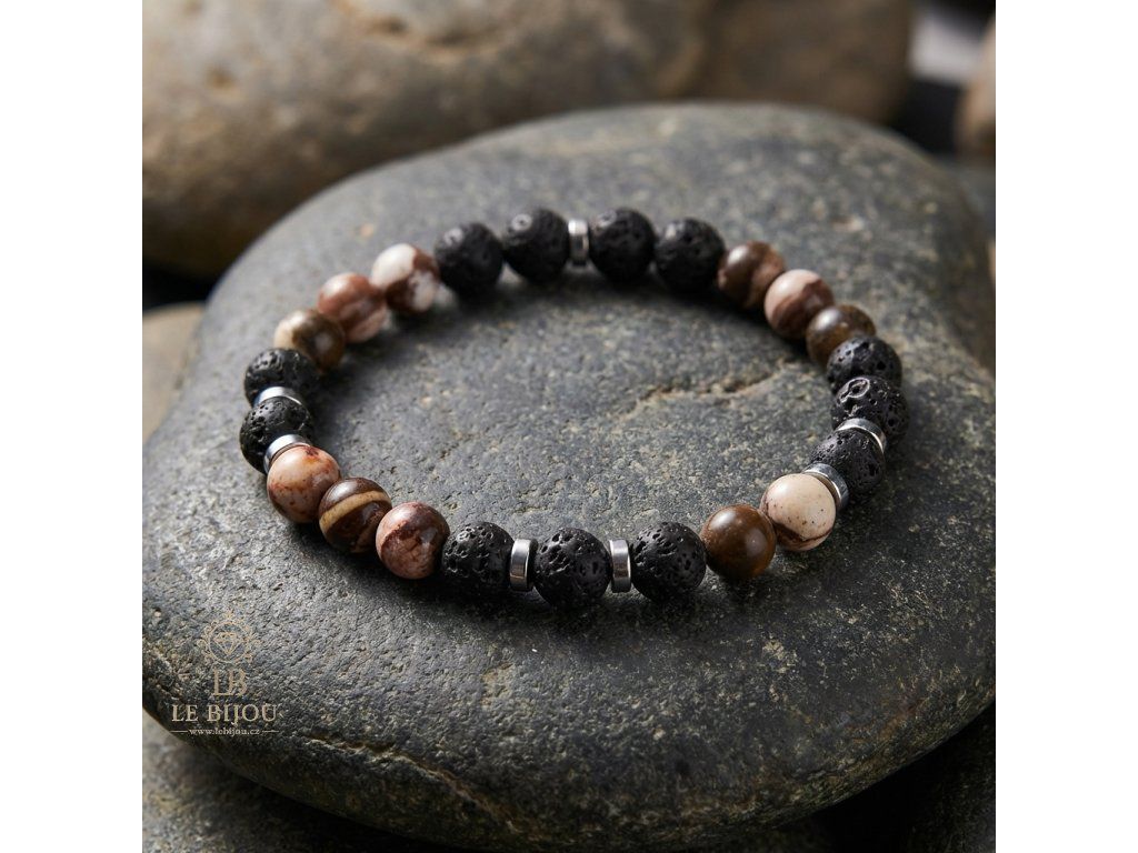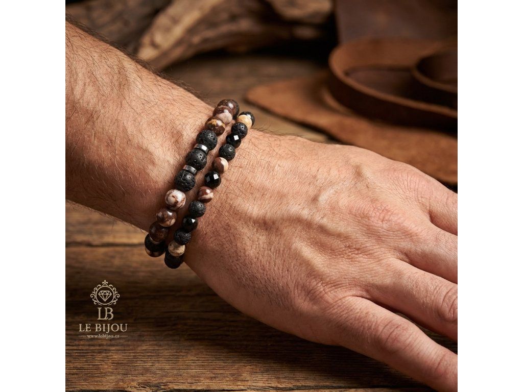 SÍLA ZEMĚ - Pánské náramky Jaspis, Láva & Hematit (set 2 ks) - hnědá