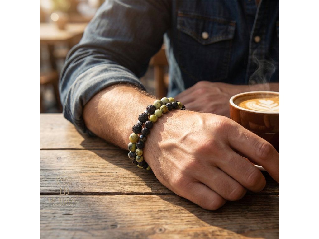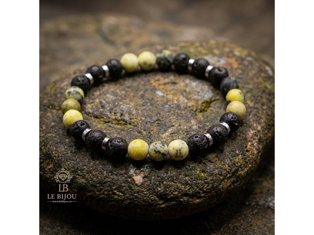 SÍLA ZEMĚ - Pánské náramky Jaspis, Láva & Hematit (set 2 ks) - žlutý