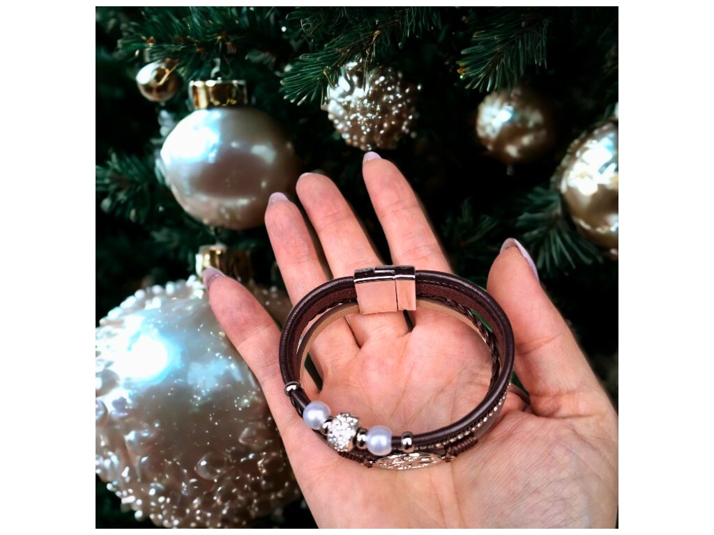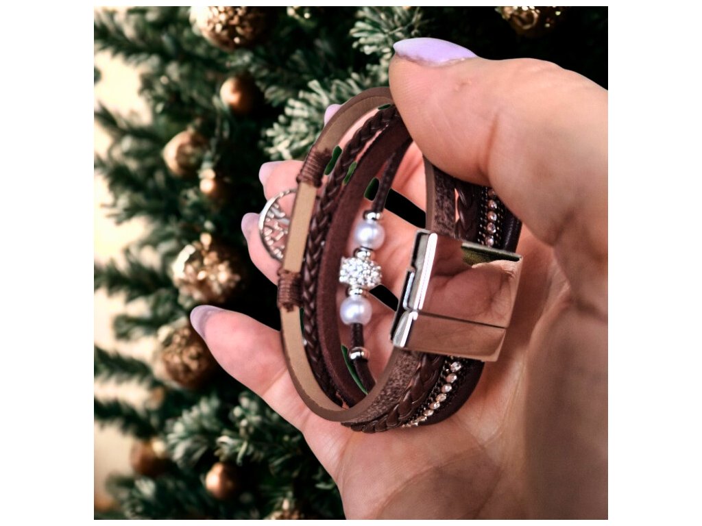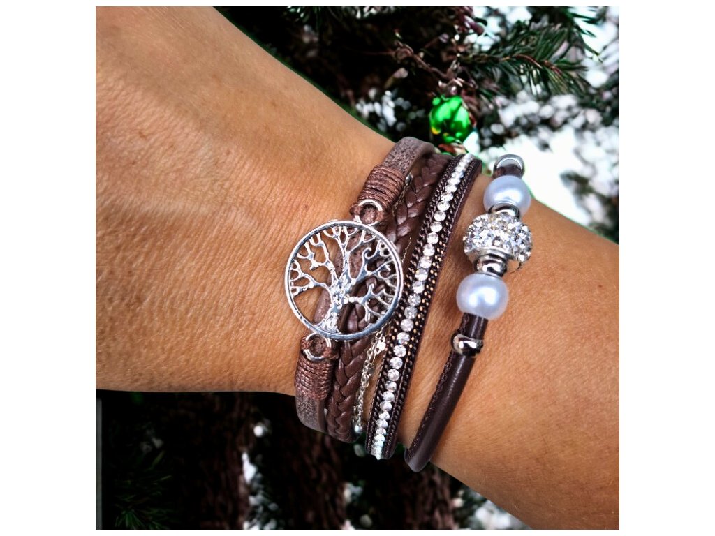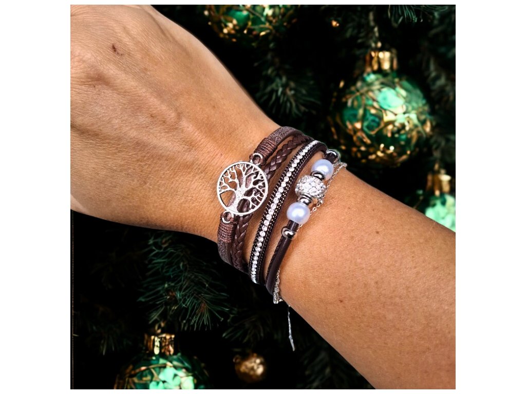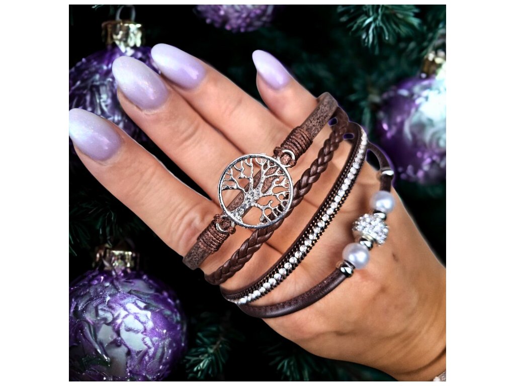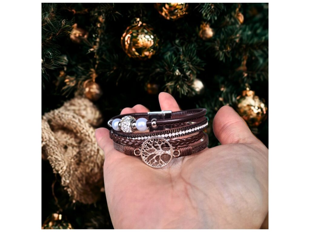 🌿 Vícevrstvý náramek se stromem života - hnědý 🌿