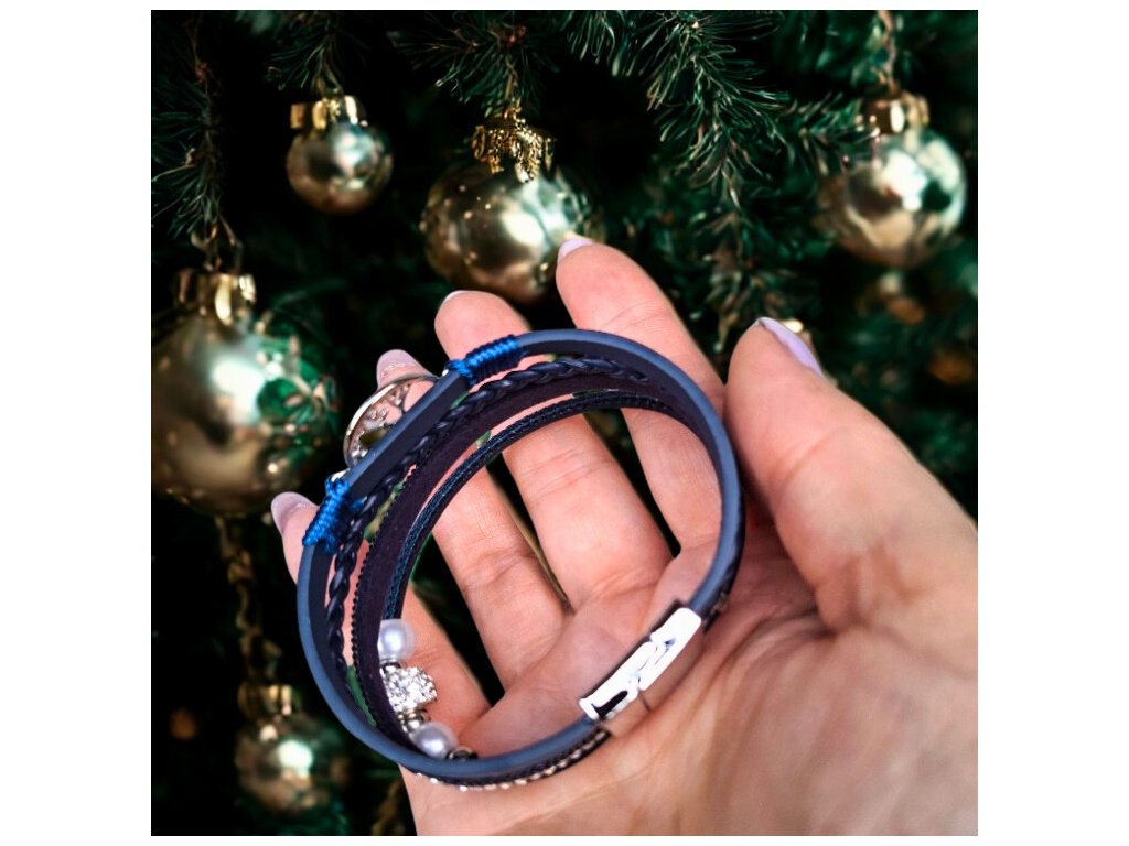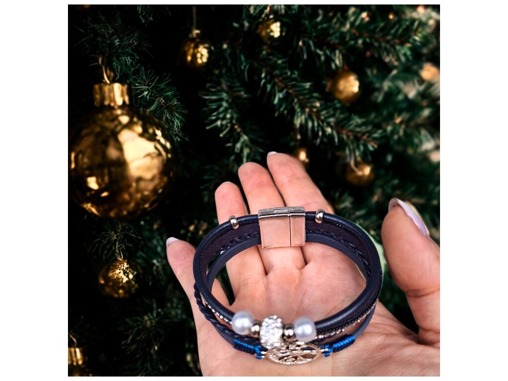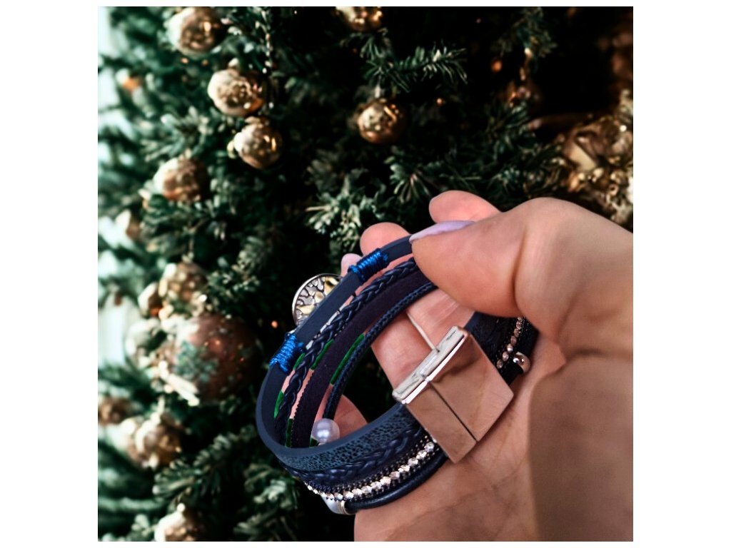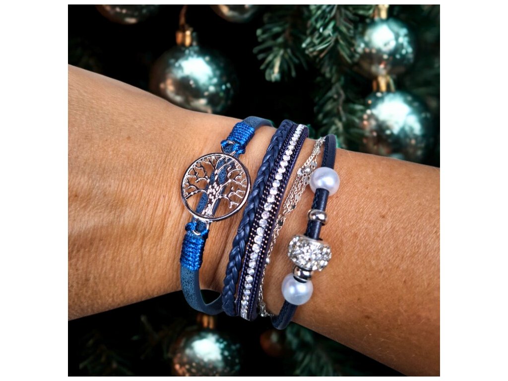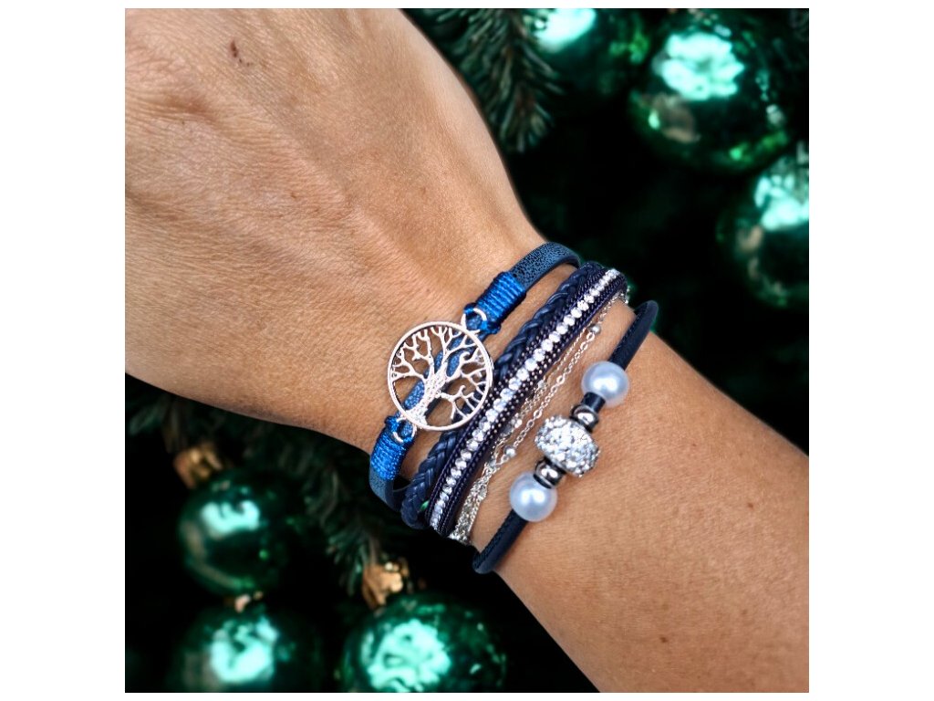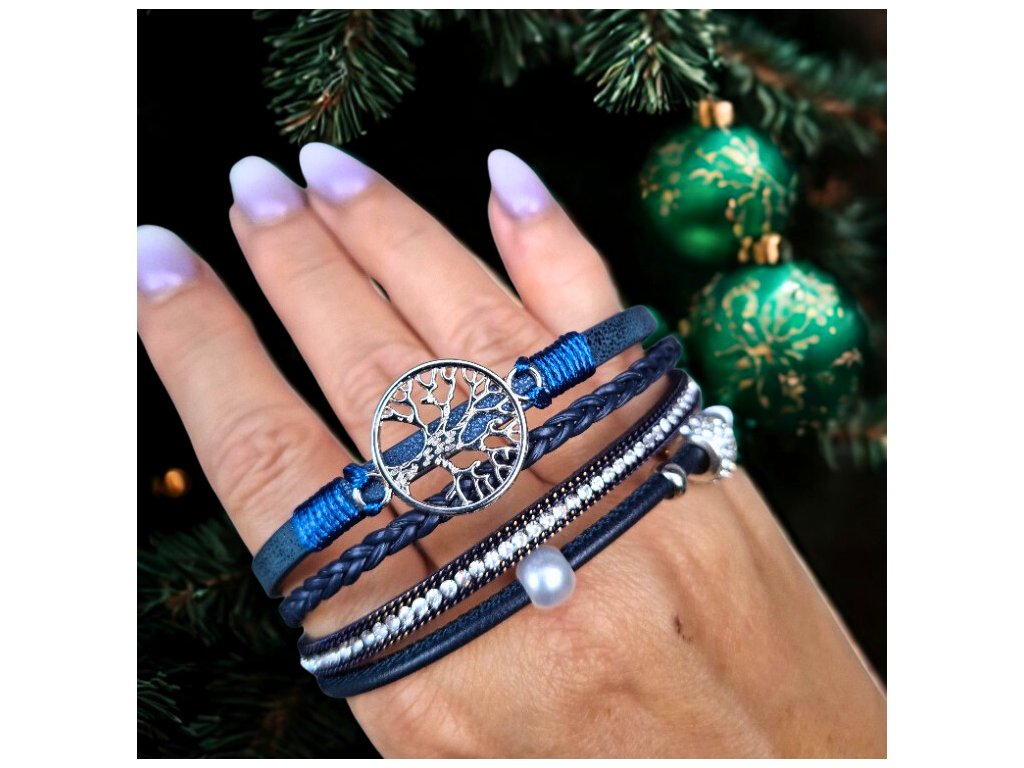 Vícevrstvý náramek se stromem života - modrý