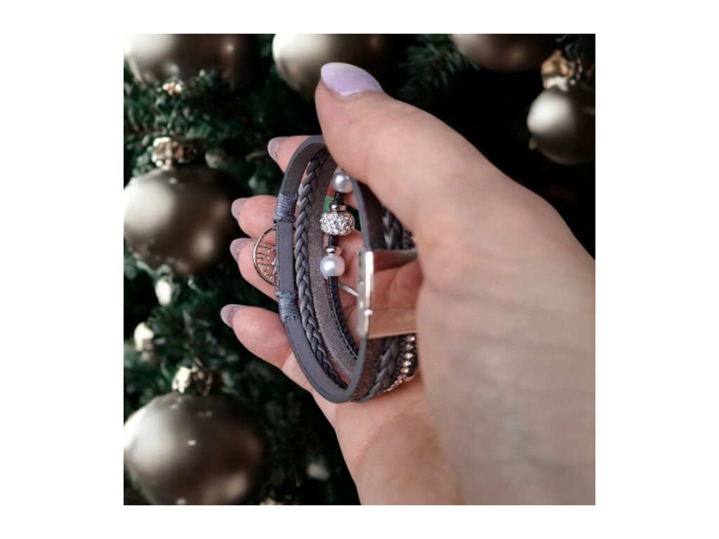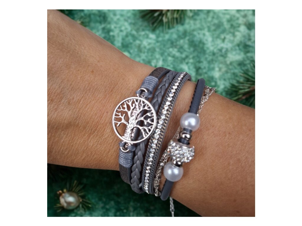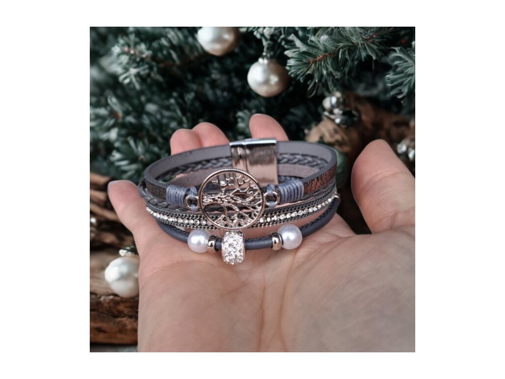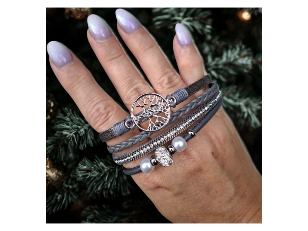 🌿 Vícevrstvý náramek se stromem života - šedý 🌿