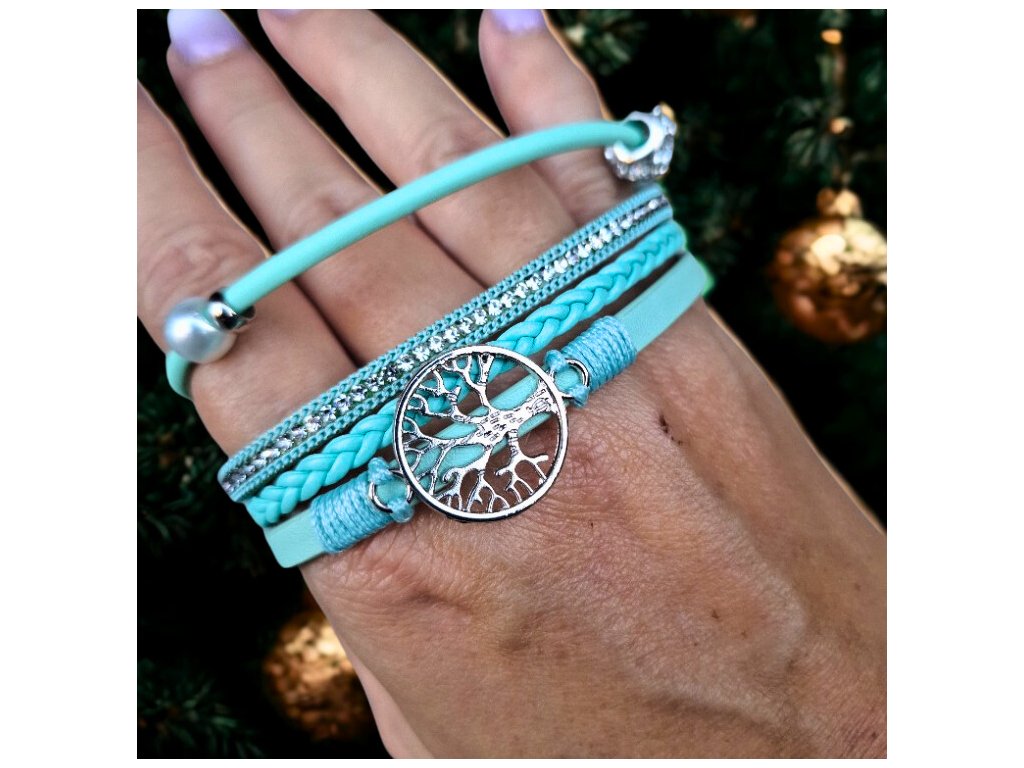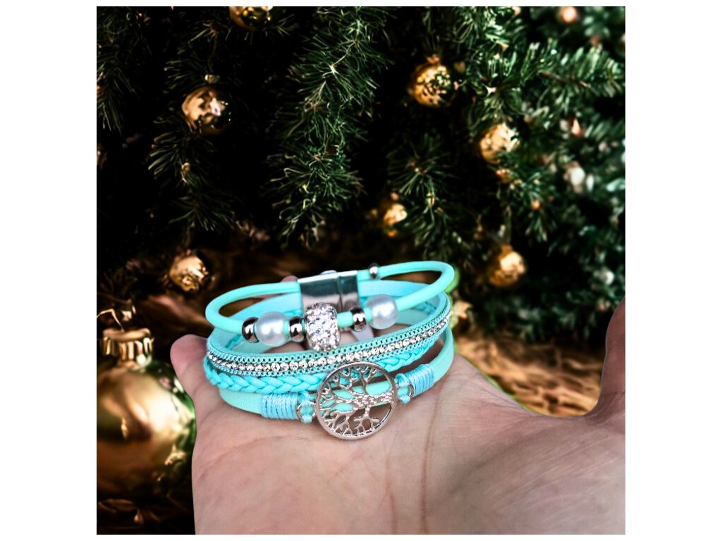Náramek je vyroben z kvalitní umělé kůže, ozdoben přívěskem stromu života ze slitiny a jemnými kamínky, které mu dodávají šmrnc i jiskru.