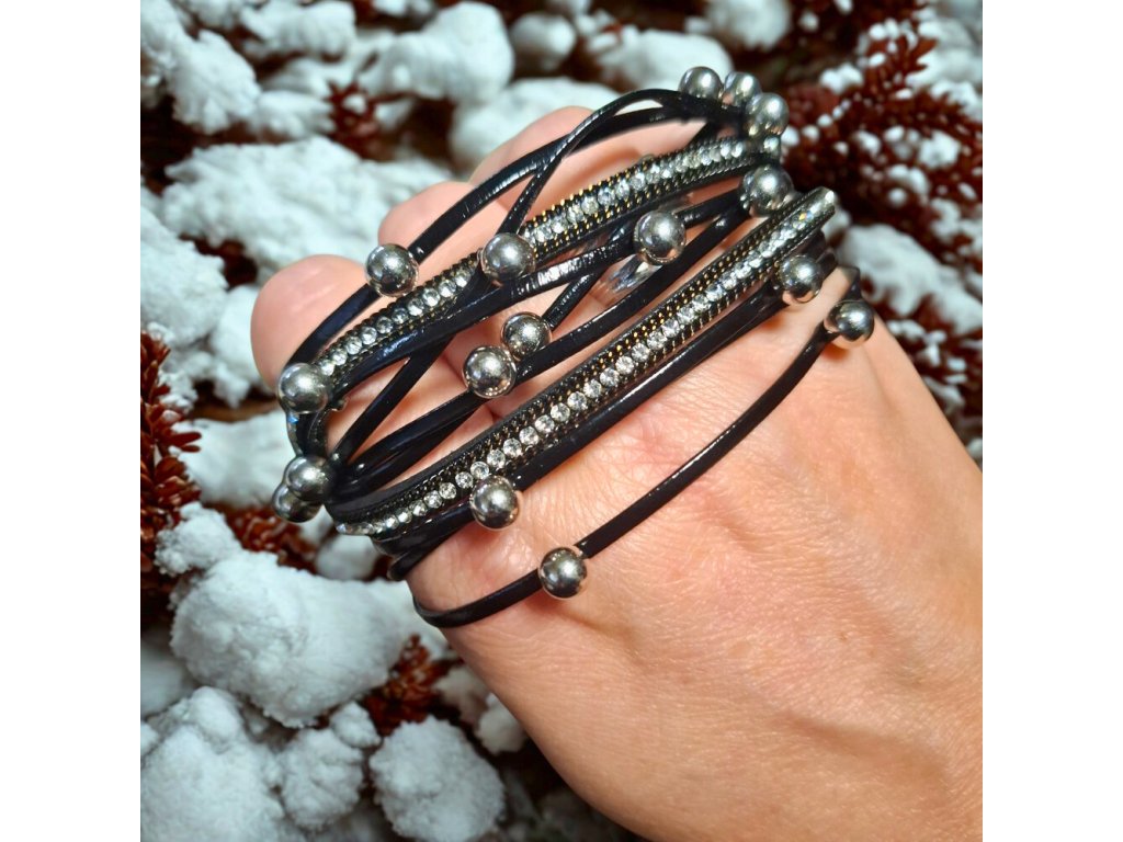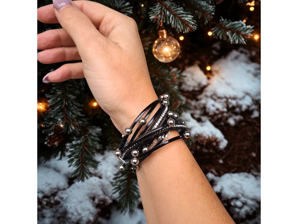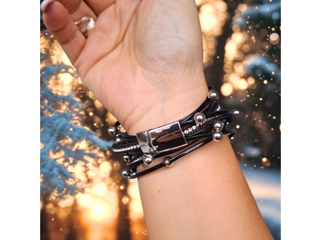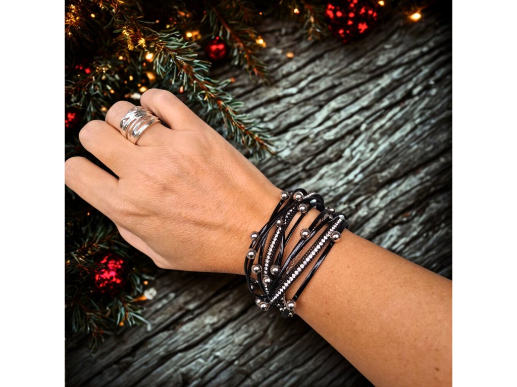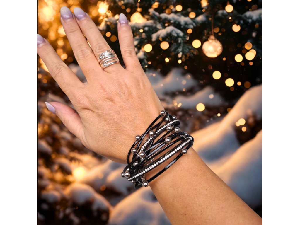 Vícevrstvý náramek z umělé kůže – černý