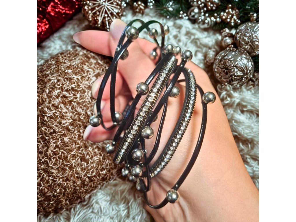 Dodej svému outfitu stylový náboj s tímto vícevrstvým náramkem, který kombinuje černý řetězový design, jemný třpyt štrasových kamínků a pohodlnou PU umělou kůži. ✨